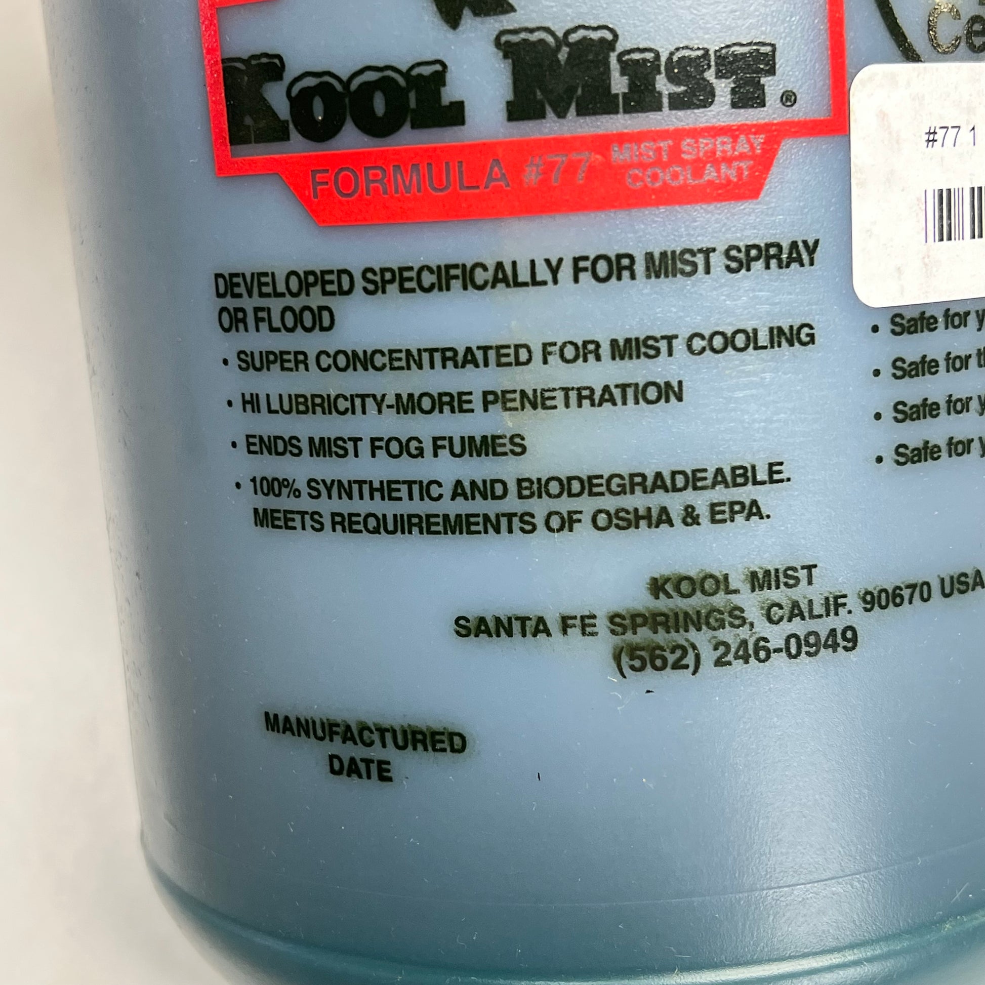 KOOL MIST Formula #77 Concentrated Coolant Cutting Fluid 1 Gal Jug Blue 77-4