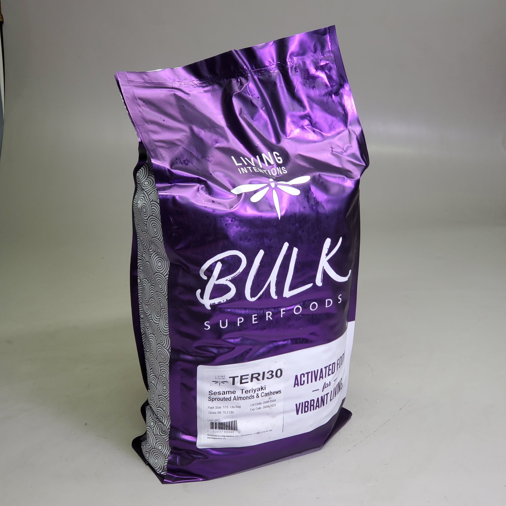 LIVING INTENTIONS Sprouted Almonds & Cashews 15 Lbs Sesame Teriyaki BB 09/25 D