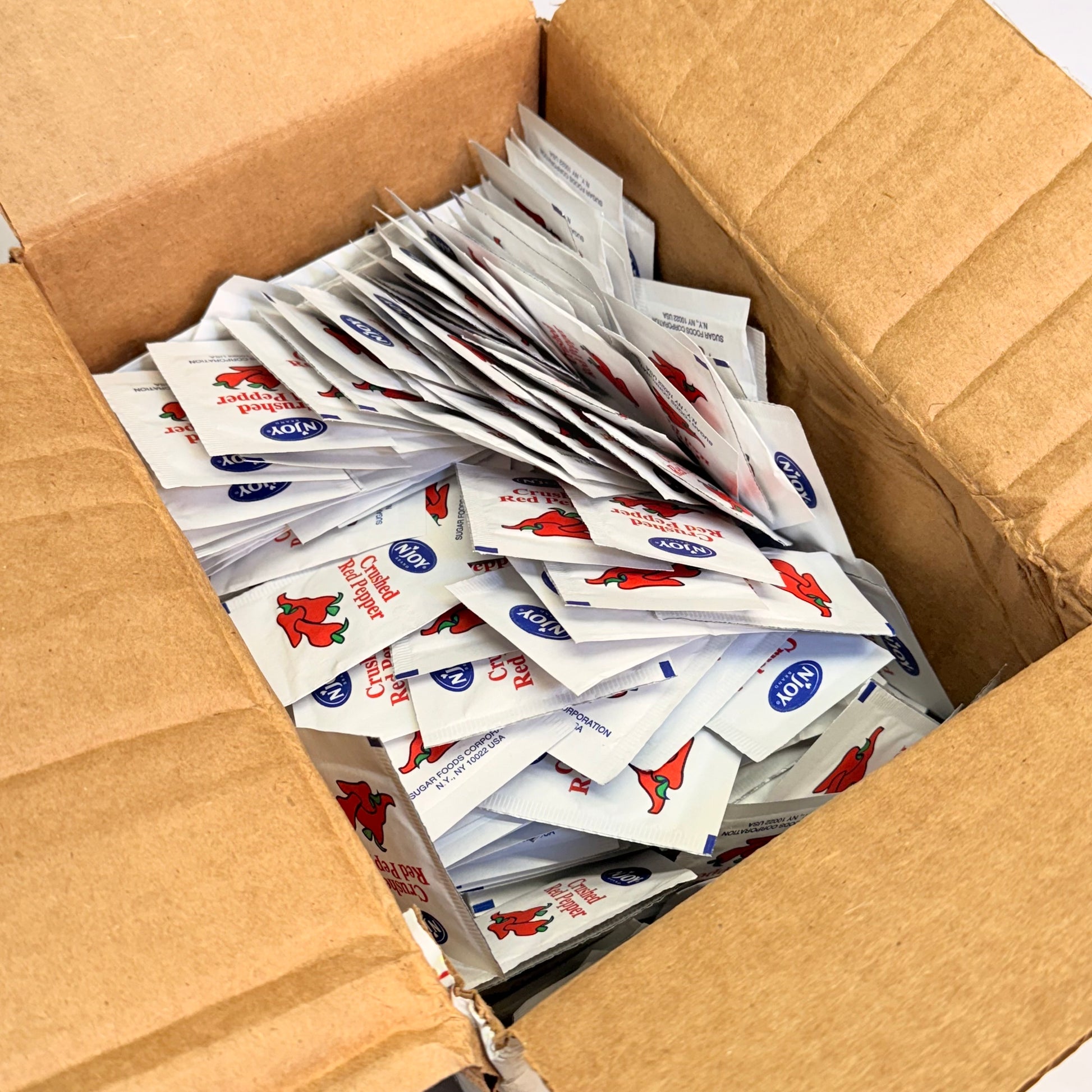 N'JOY (500 PACK) Crushed Red Pepper 1g BB 10/26 (New - Damaged Box - Opened)