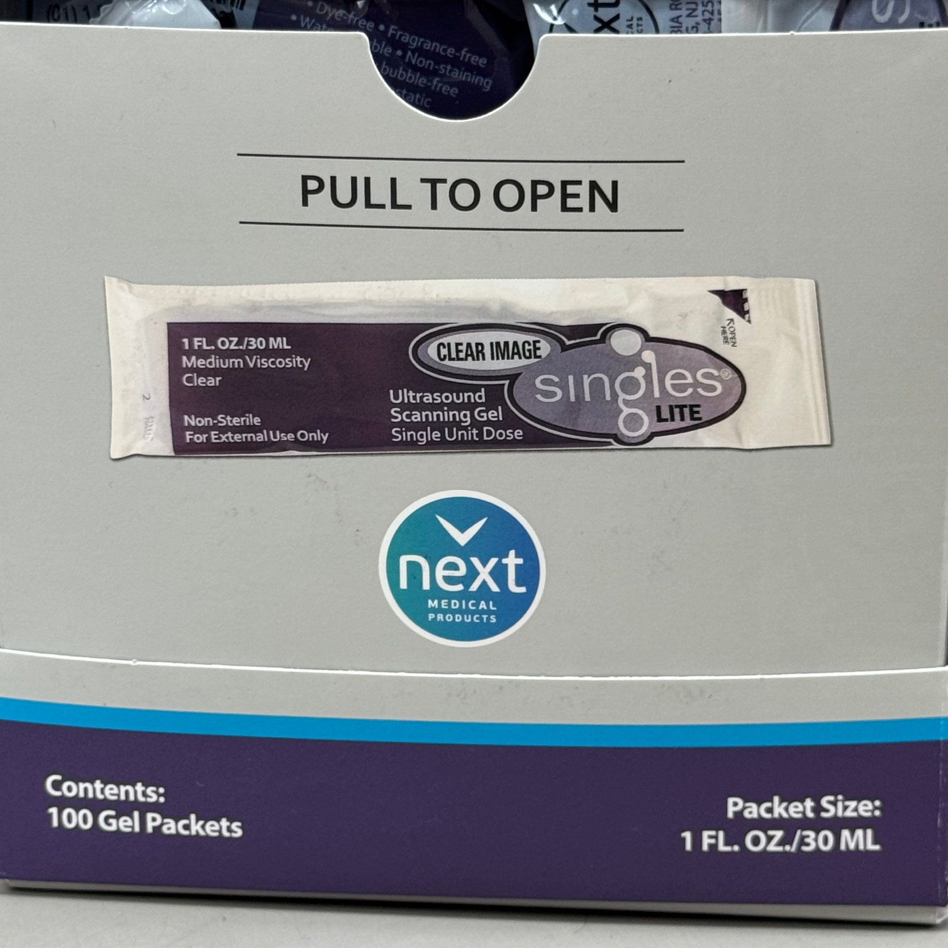 SINGLES (100 Gel Packets) Medium Viscosity Ultrasound Scanning Gel 1fl oz per packet (New Other- Slight Damage To Package)
