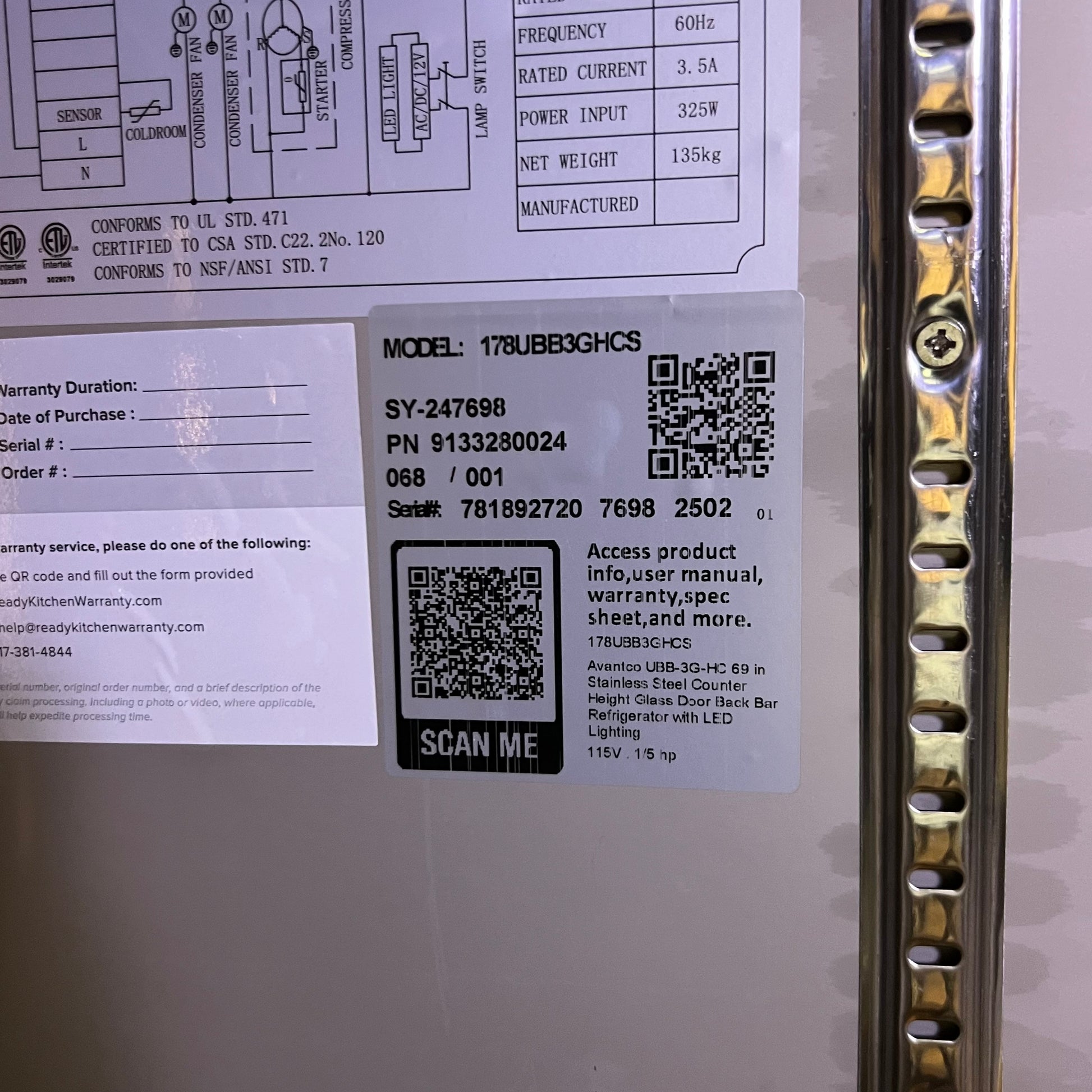 AVANTCO 69" Stainless Steel Counter Height Glass Door Back Bar Refrigerator with LED Lighting 178UBB3GHCS (New Other, Minor Damage Cosmetic)