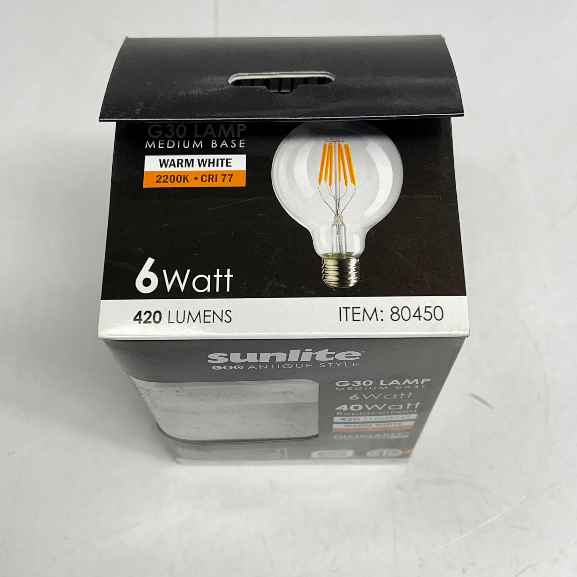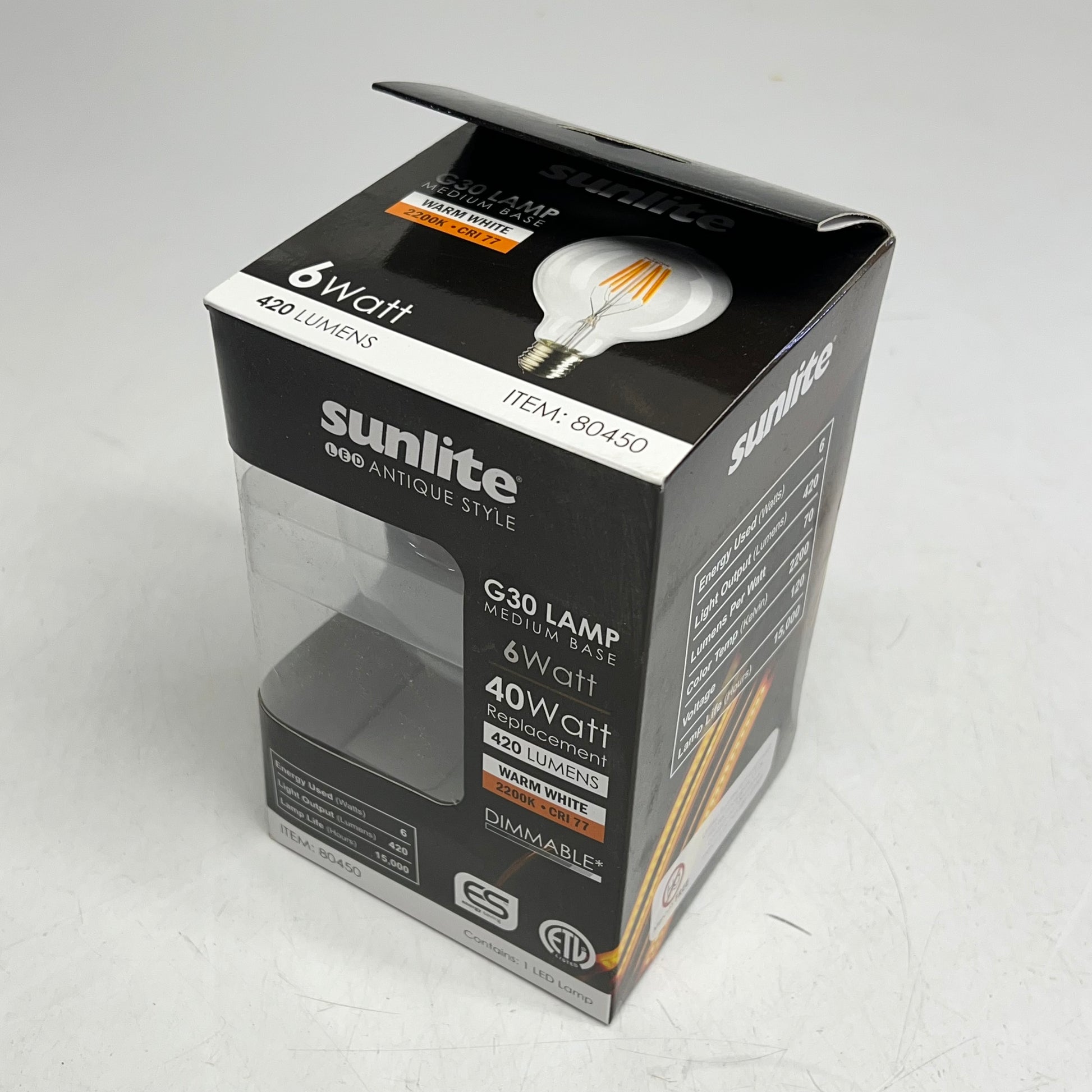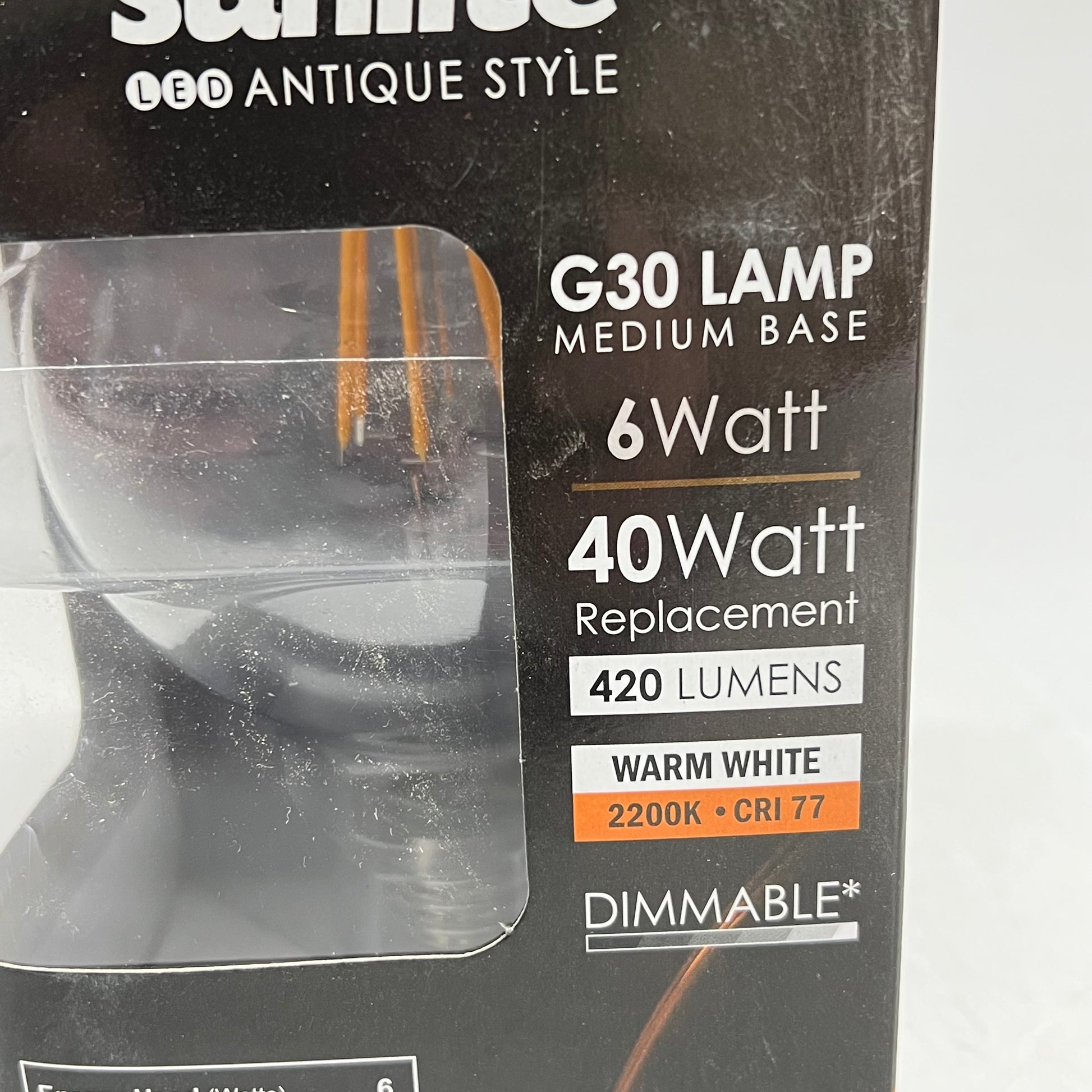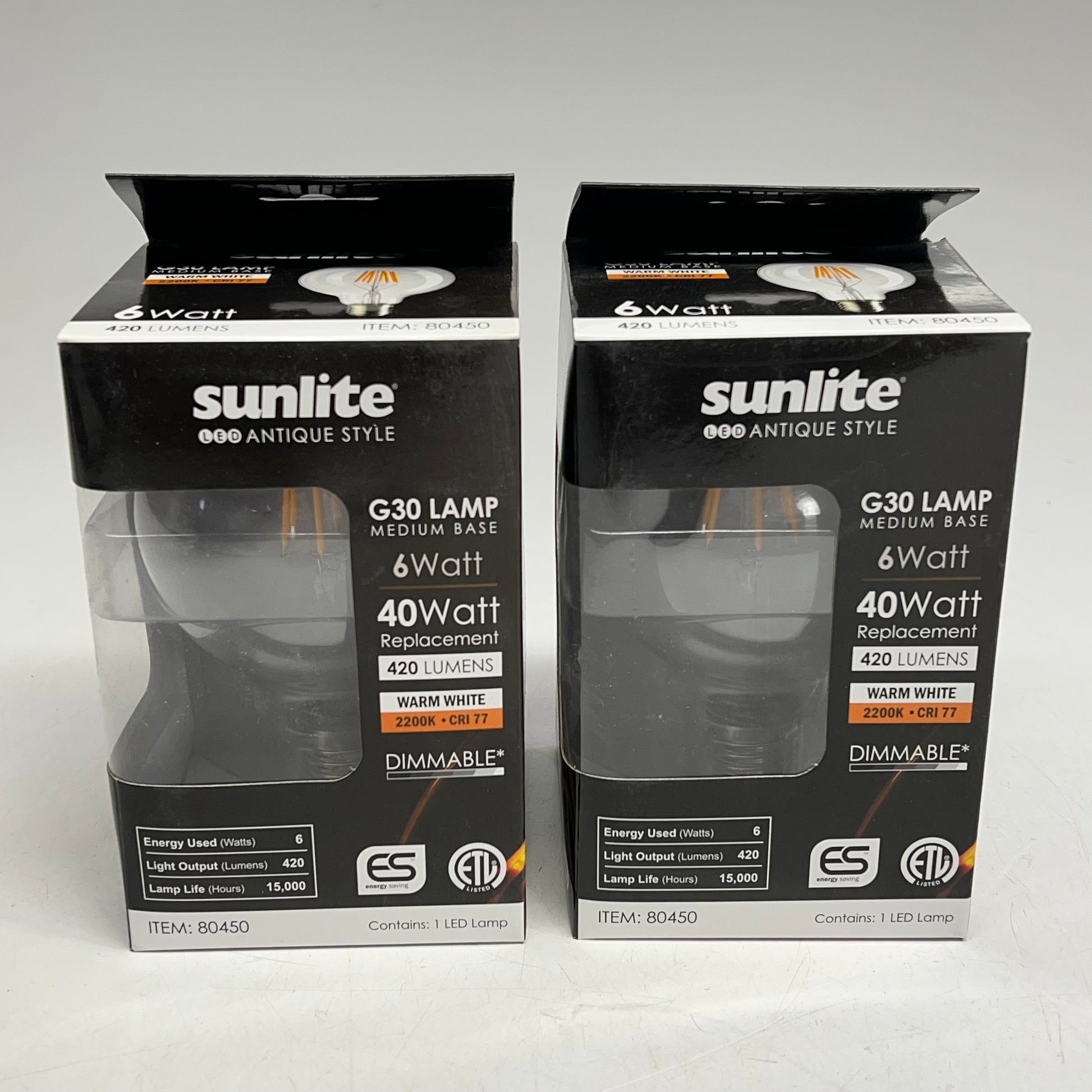 SUNLIGHT (2 PACK) Led Antique Style G30 Lamp Bulb 15,000 Hr Warm White 80450