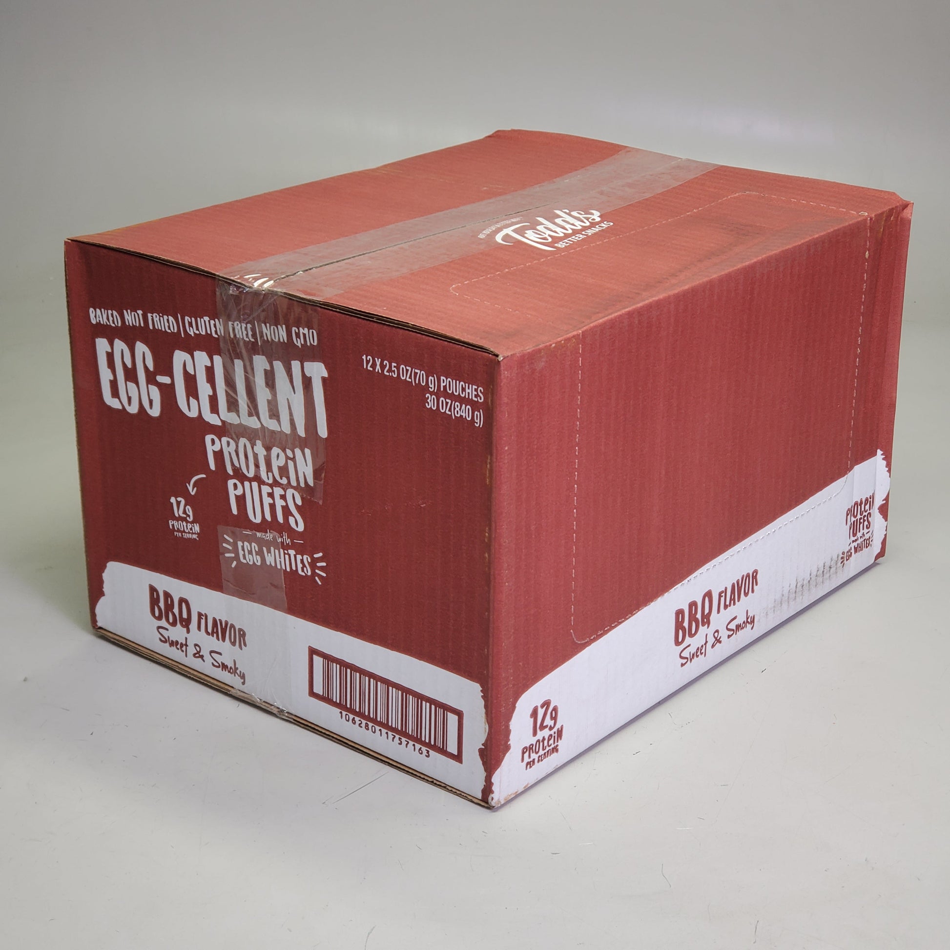 TODDS (12 Pack) Egg-Cellent Protein Puffs BBQ Flavor Sweet & Smokey 2.5 oz BB 12/25 E