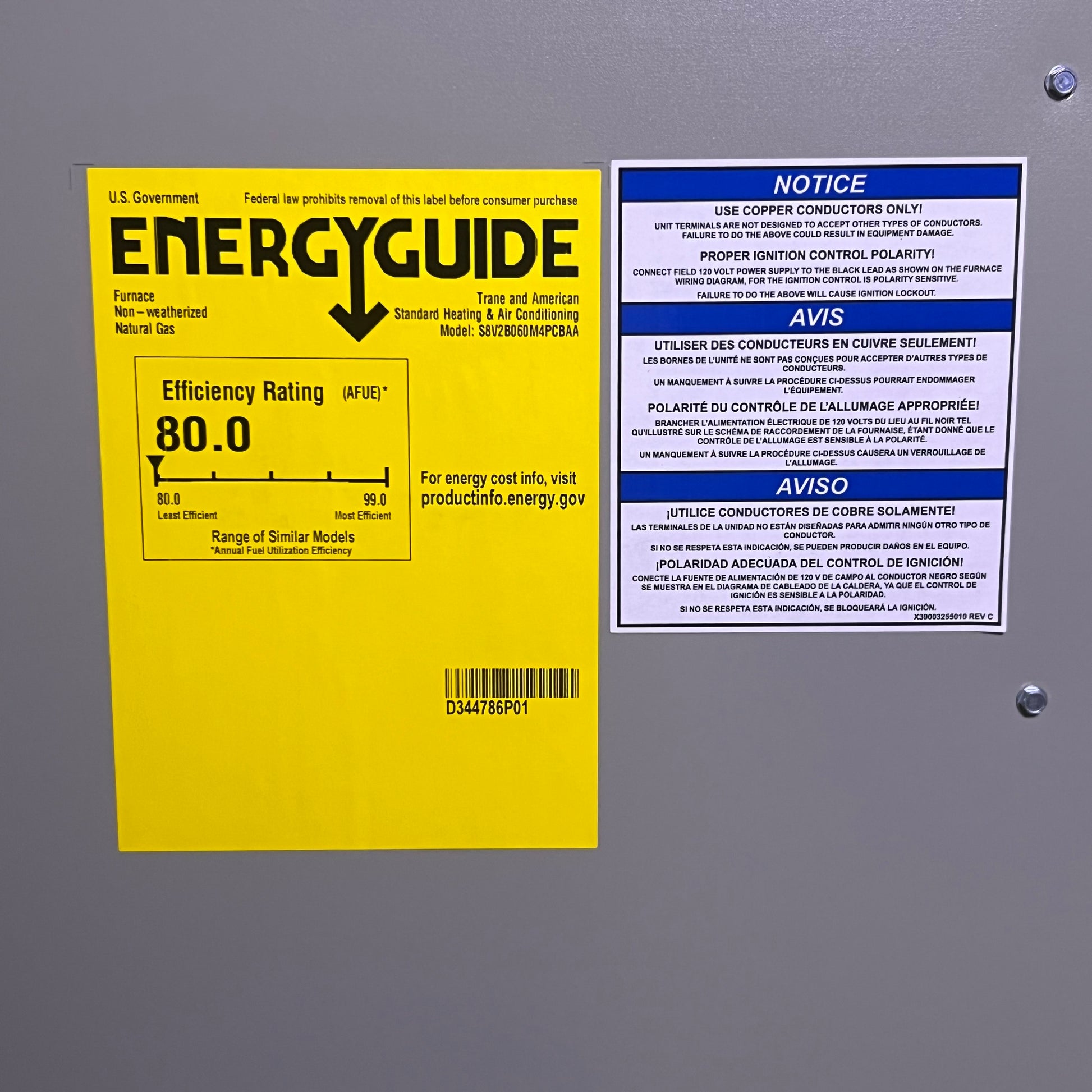 TRANE S8V2B060M4PCBA 60K BTU 2 Stage V Speed 80% VS Furnace (New-Other)