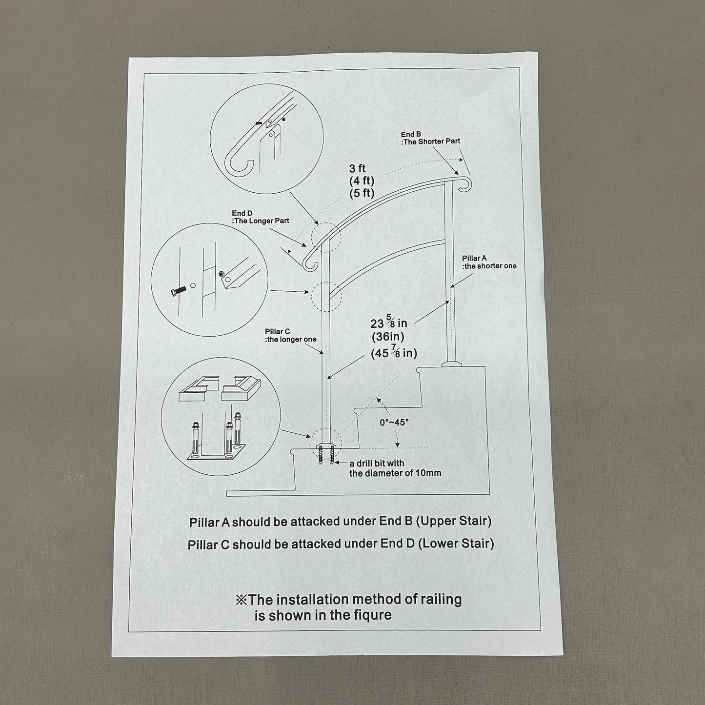 - Extensive Application: The railing for steps provides extra security for the elderly, children, pregnant, disabled family members, and people after surgery. It can be installed on concrete, brick, and wood steps of porches, balconies, gardens, residential buildings, hotels, garages, etc. This outdoor railing is ideal for places where you cannot attach to a wall or structure.