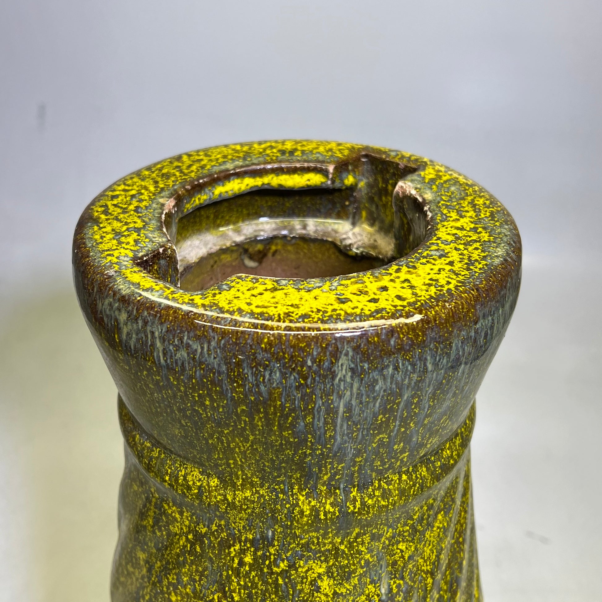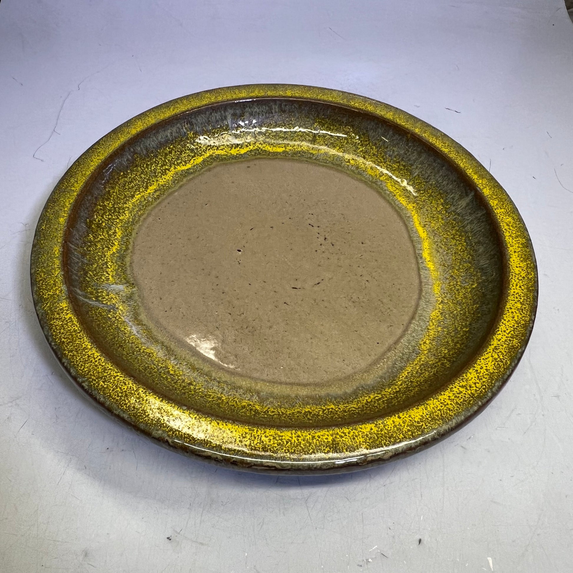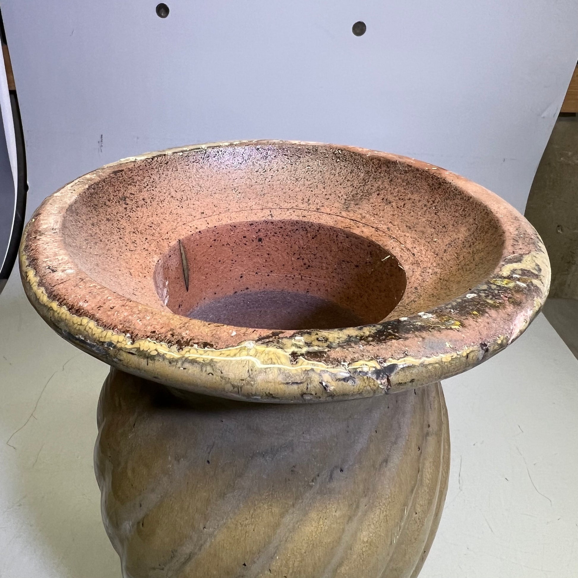 Glazed Pottery 2 Piece Swirl Stand Bird Bath 22" L x 20" Dia Bright Yellow/Taupe