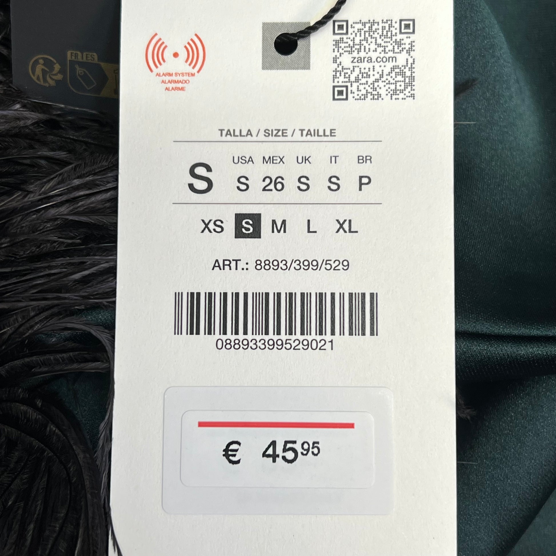 ZARA Open Back Feather Satin Effect Short Dress Women's Sz S Dark Green/Black