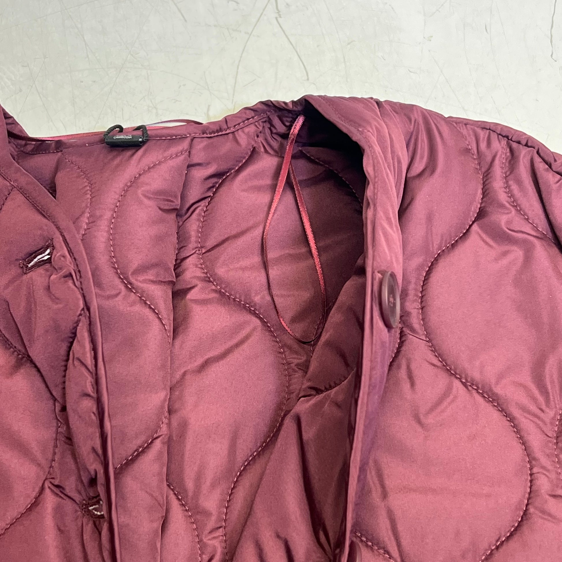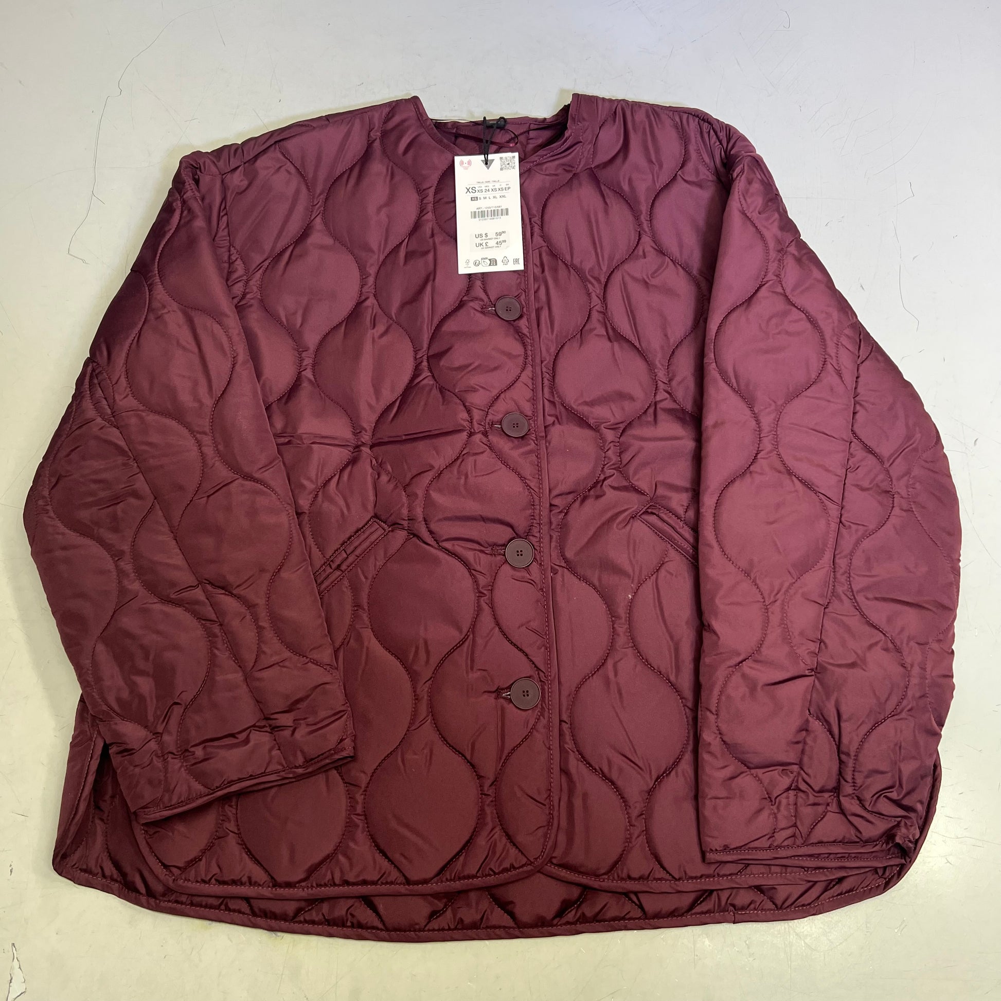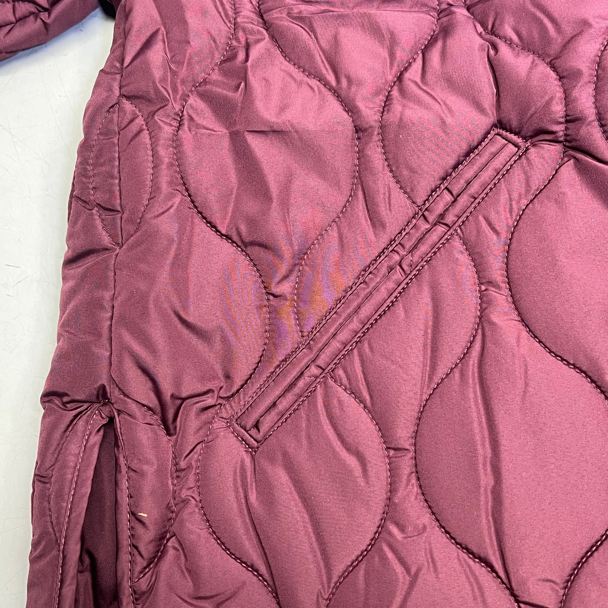 ZARA Wavy Quilted Pattern Stitching Hoodless Coat Women's Sz XS Plum Purple