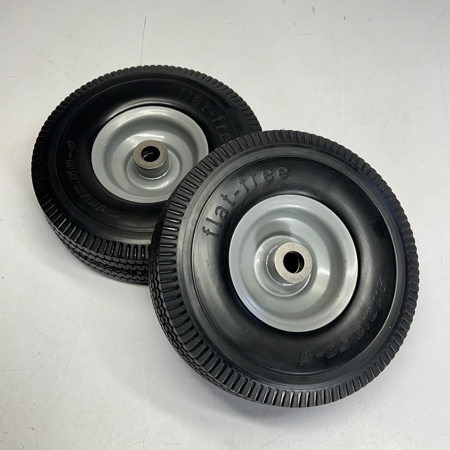 (2 PACK) 4.10/3.50-4 Flat Free Tire Wheel 10" Solid Rubber Steel Rim