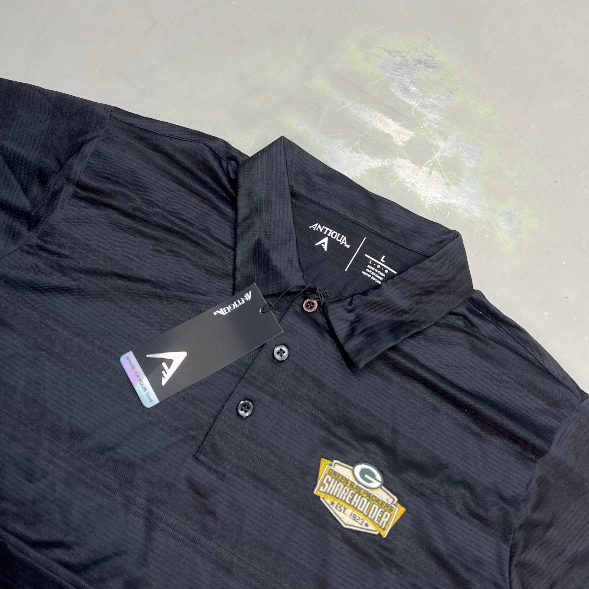 ANTIGUA Green Bay Packers NFL Team Apparel Polo Shirt Men's Sz L Black 3601392