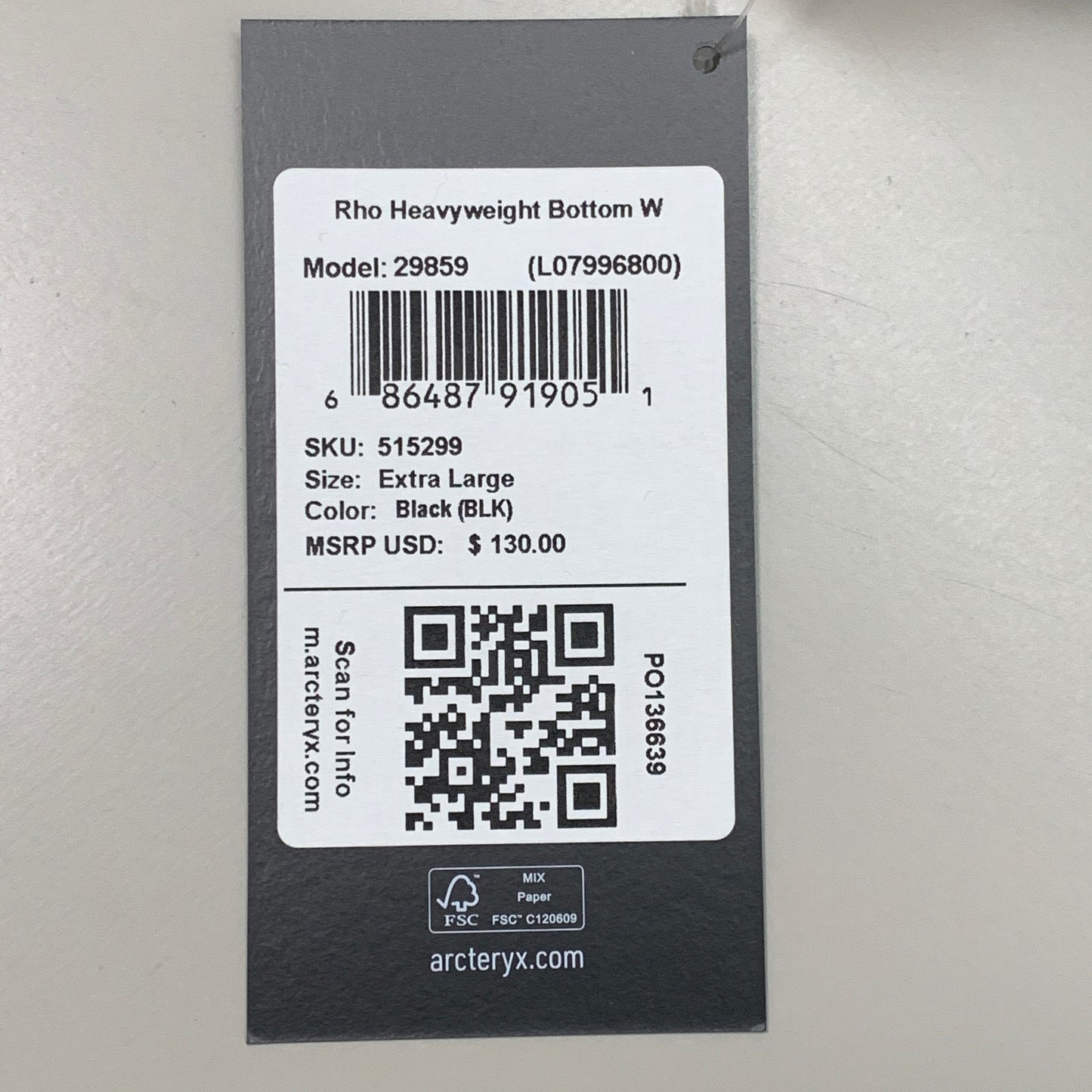 ARC’TERYX Rho Heavyweight Bottom Fleece Base Layer Women's Sz XL Black 29859