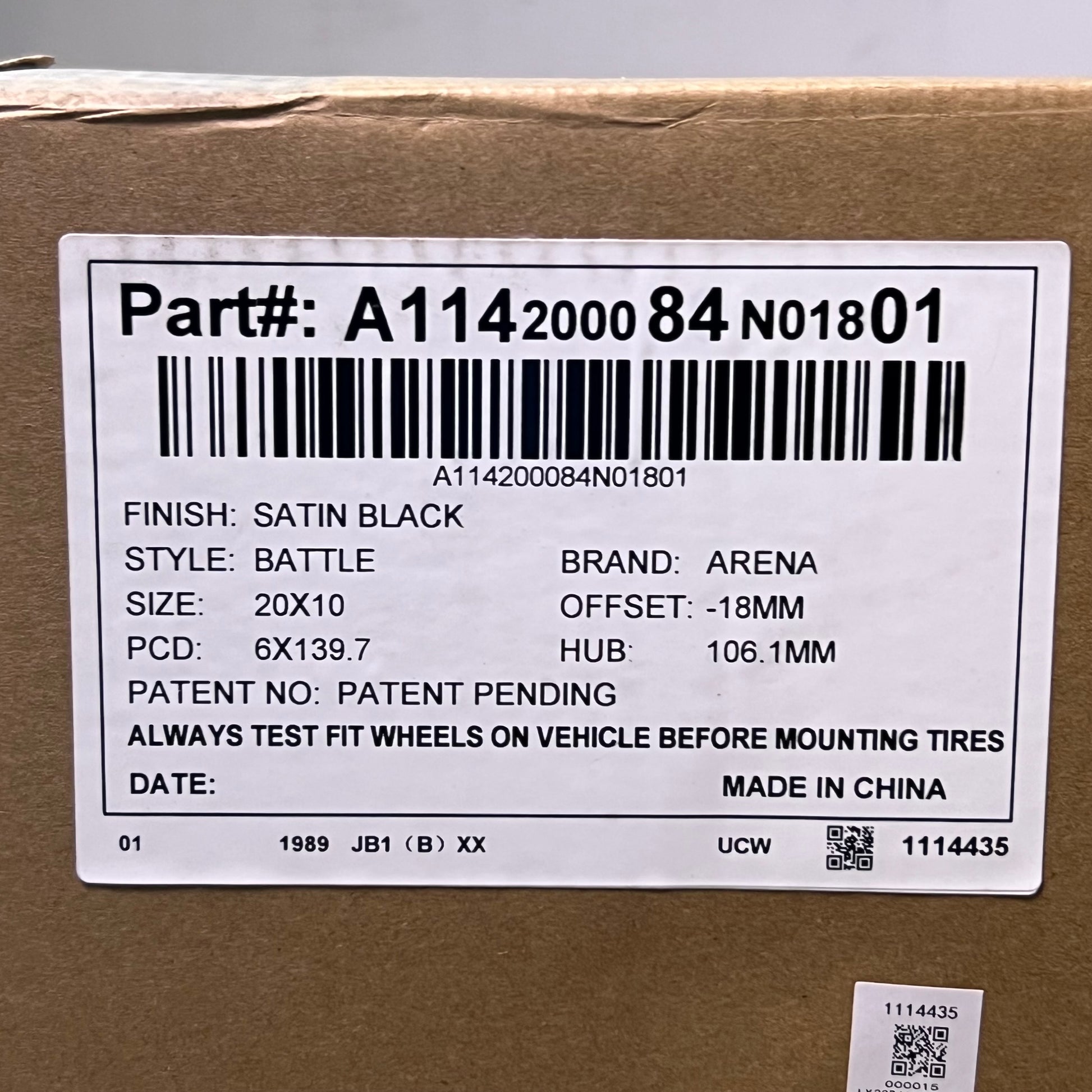 ARENA WHEEL Battle Wheel 20" x 12", Stud Circle: 6 x 139.7 Satin Black A114