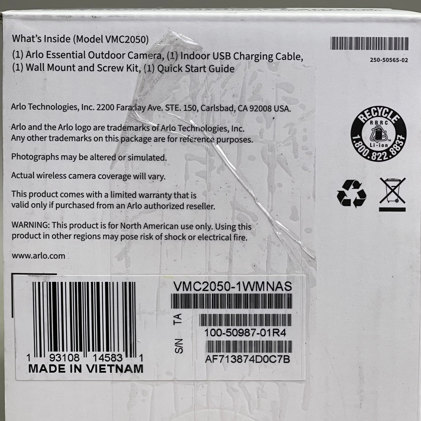 ARLO Essential Outdoor Camera 2nd Gen w/ Color Night Vision 130° FOV White VMC2050-1WMNAS
