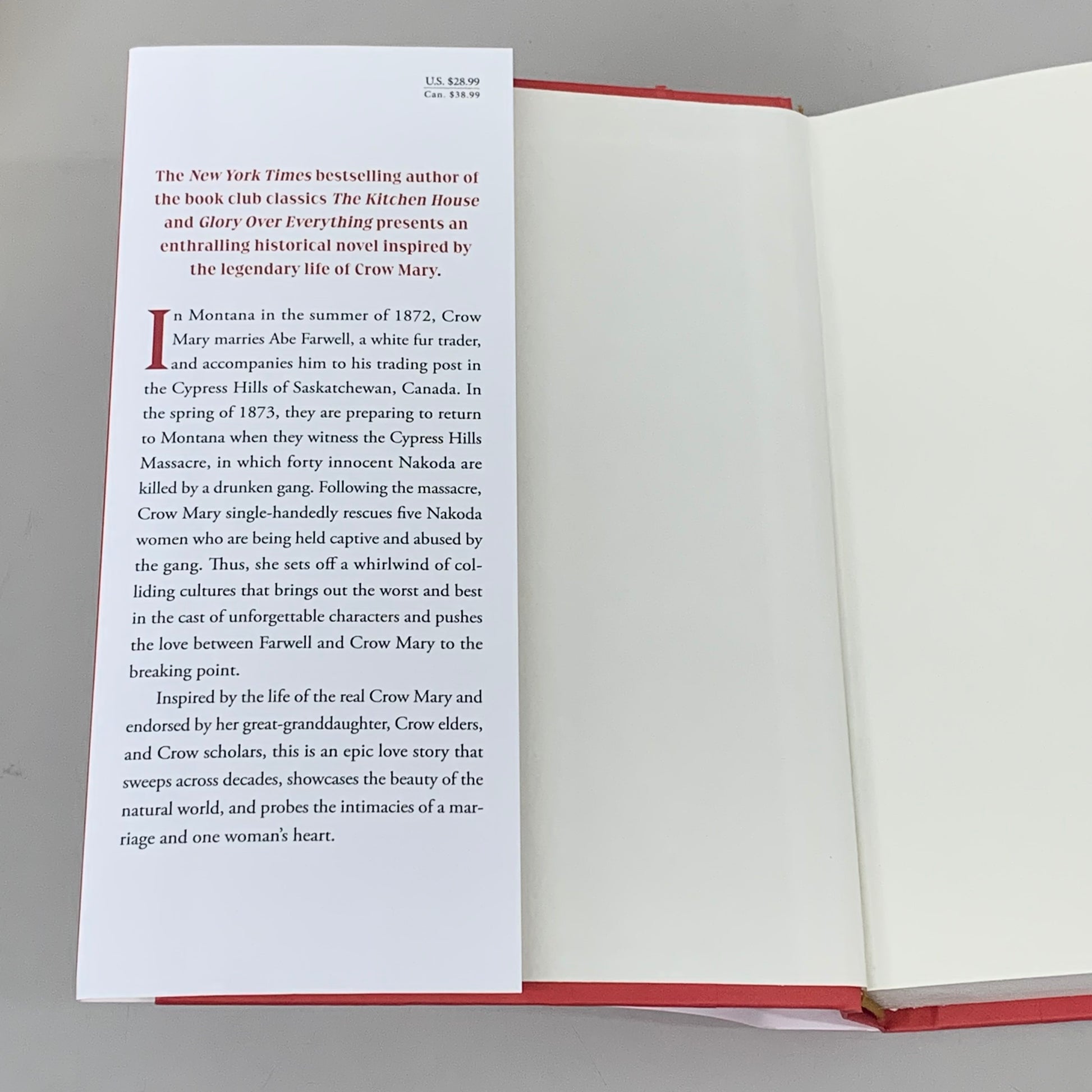 In 1872, sixteen-year-old Goes First, a Crow Native woman, marries Abe Farwell, a white fur trader. He gives her the name Mary, and they set off on the long trip to his trading post in Saskatchewan, Canada. Along the way, she finds a fast friend in a Métis named Jeannie; makes a lifelong enemy in a wolfer named Stiller; and despite learning a dark secret of Farwell’s past, falls in love with her husband.