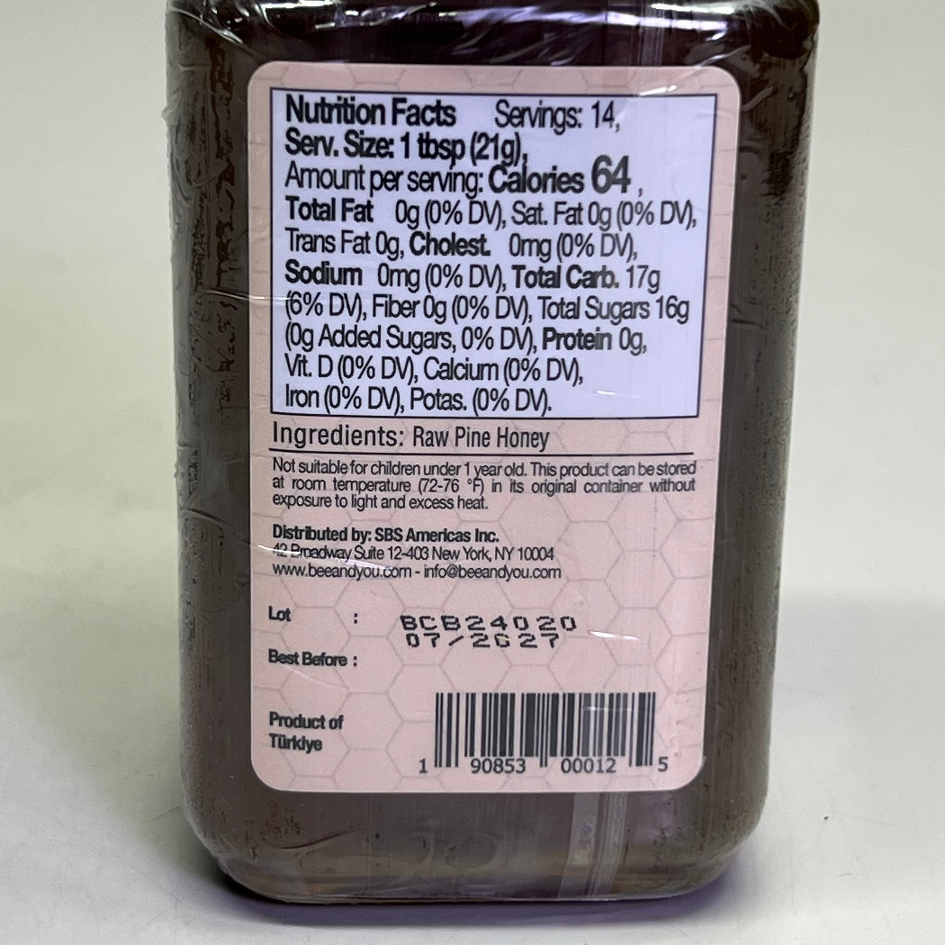 BEE & YOU Pine Raw Honey Honeydew Honey 10.6 oz Brown BB 07/27