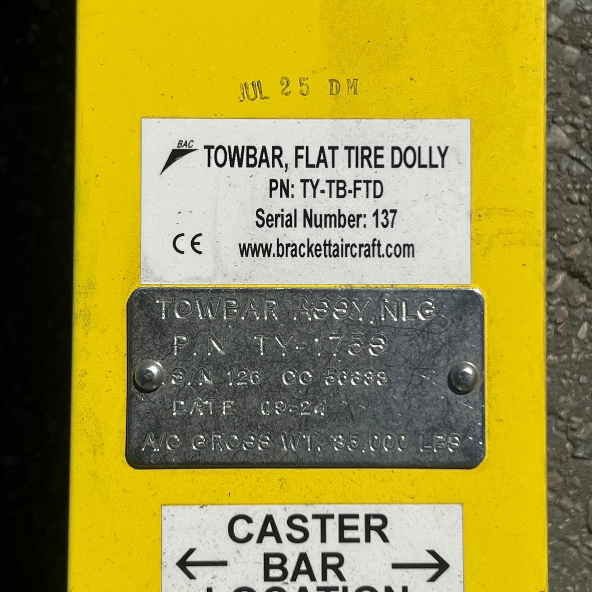 BRACKETT Yellow Guard Rail W/hook 130"H x 4"W x 4"L, TY-TB-FTD