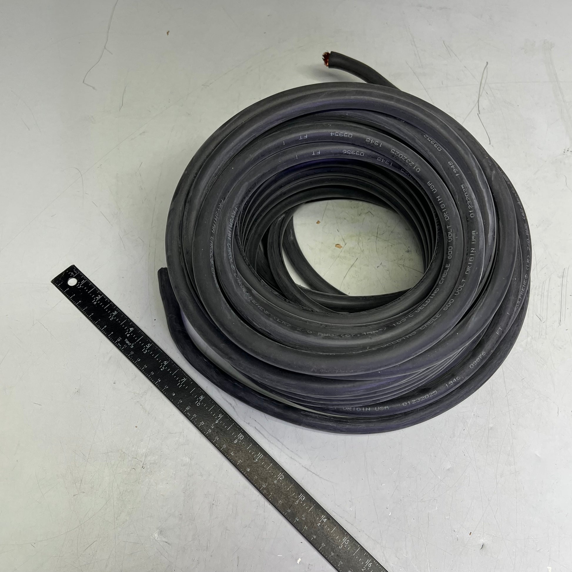 Description: Flexible, durable electrical cable that supplies power to the secondary circuit of electric welders, which controls the electrode that releases the charge needed for the welding process. Also called an electrode cable, it is commonly used in manufacturing environments to power resistance welding and arc welding equipment, or to replace or repair damaged cable. It has a single, finely stranded conductor wrapped in a nonconductive rubber jacket that is resistant to heat, burns, sparks, and abrasions. The fine copper strands give welding cable more flexibility than other types of electrical wire, and the insulating jacket is designed to hold up to repeated movement over rough surfaces.