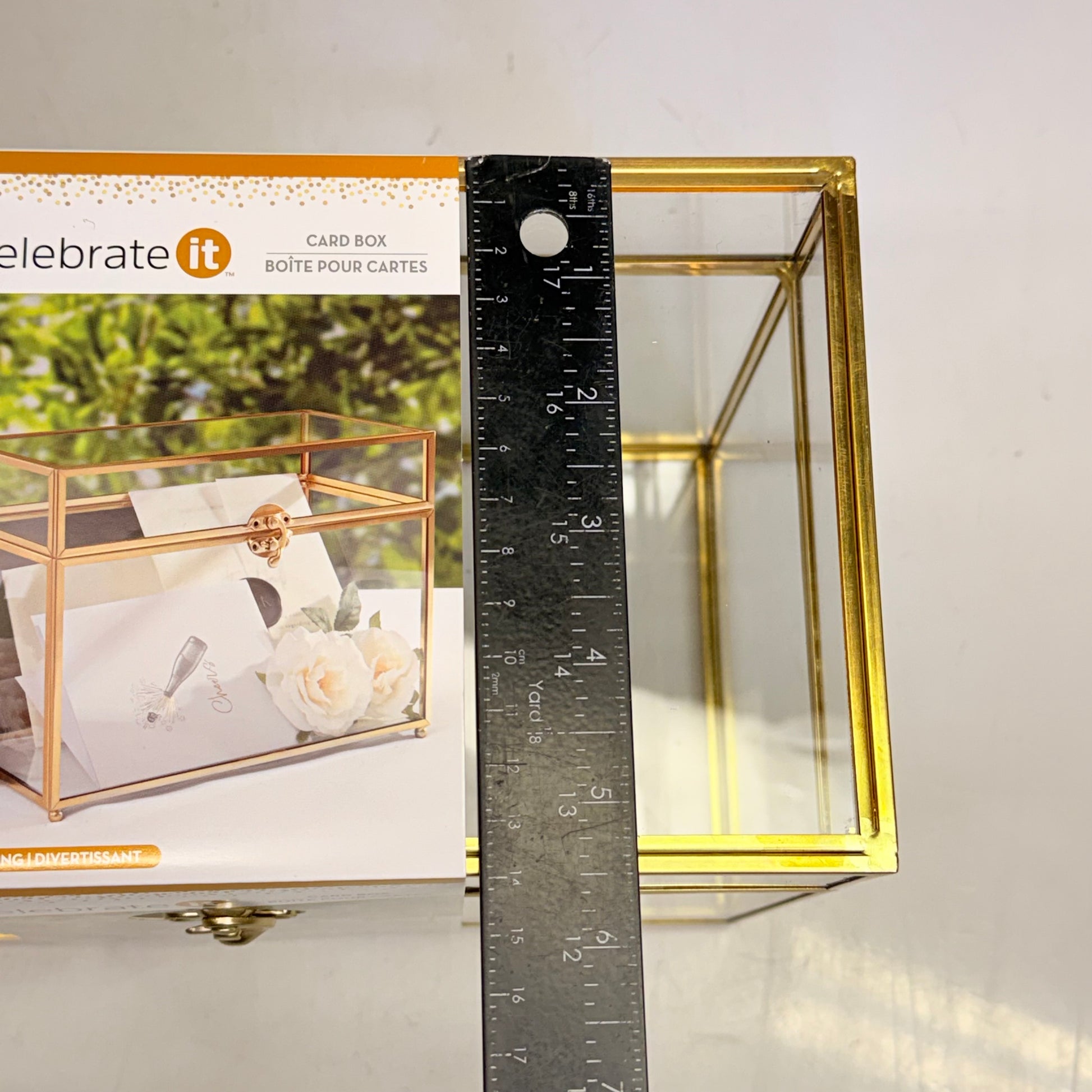 CELEBRATE IT Gold Metal & Glass Card Box Special Occasions 9.9 X 5.6 X 7.8 In 750311
