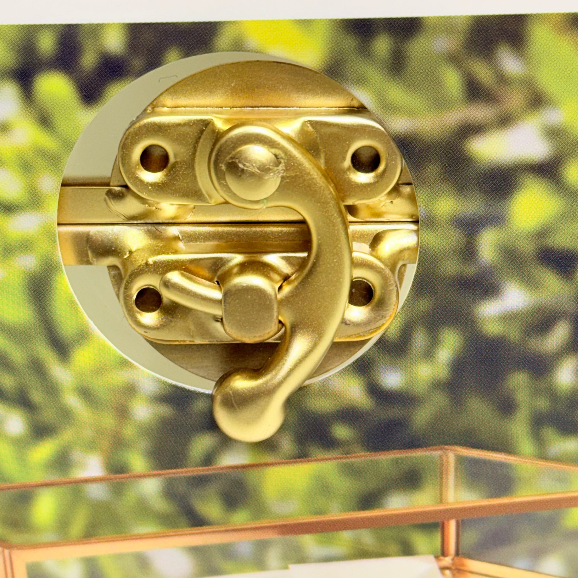 Gold Metal & Glass Card Box Special Occasions 9.9 X 5.6 X 7.8 In