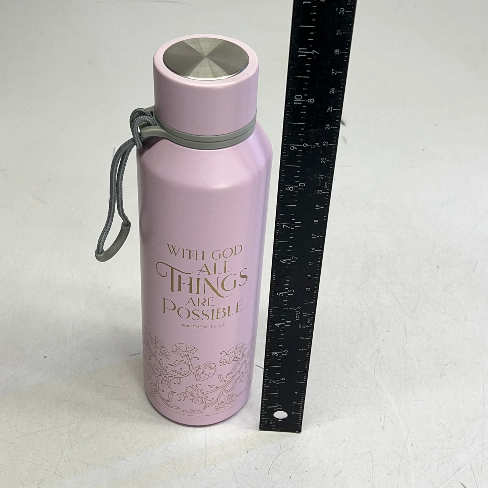 CHRISTIAN ART GIFTS Matthew 19:26 Things Are Possible Ss Water Bottle 24oz Pink