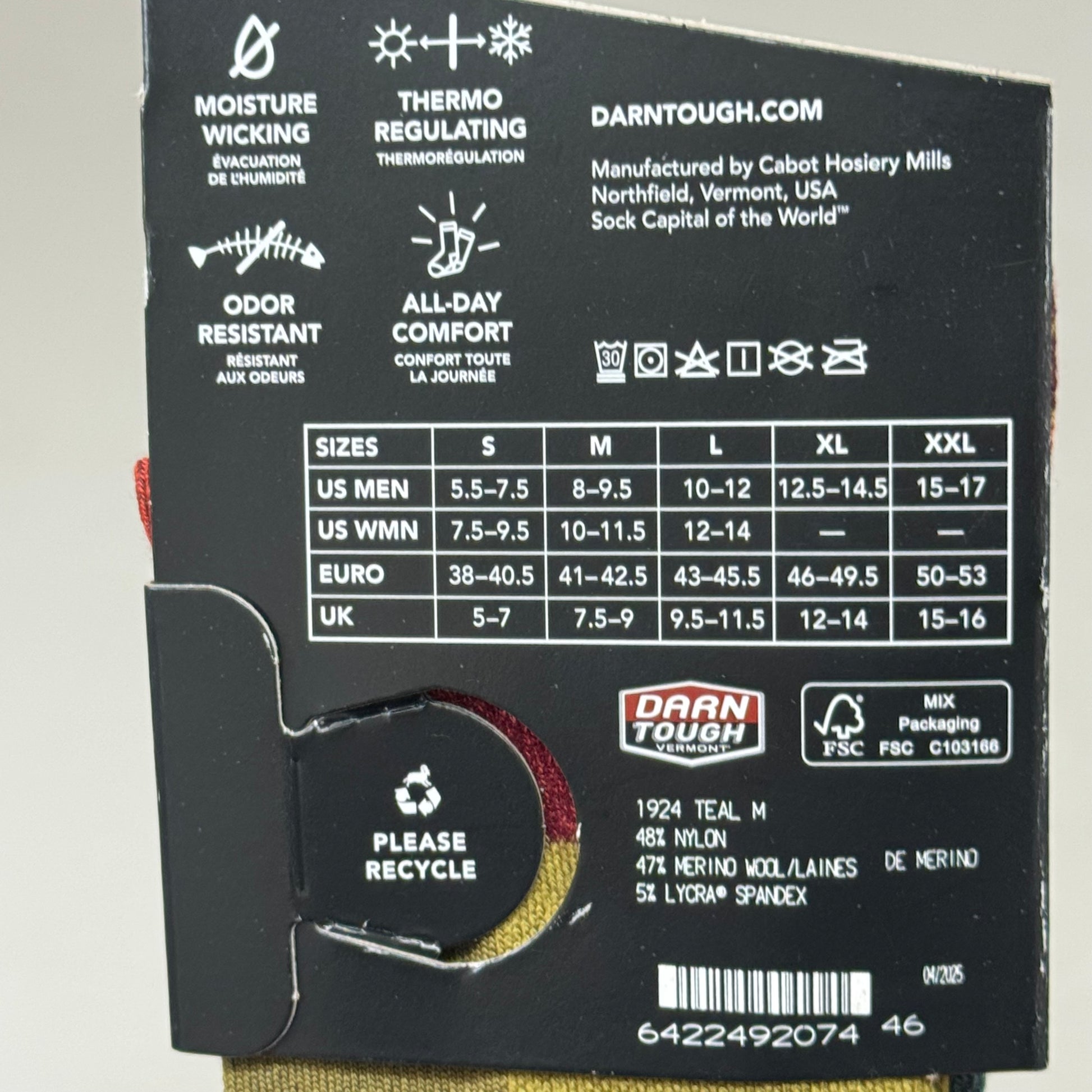 DARN TOUGH Hike/Trek Socks Micro Crew Lightweight Men SZ M 8-9.5 Teal Merino Wool