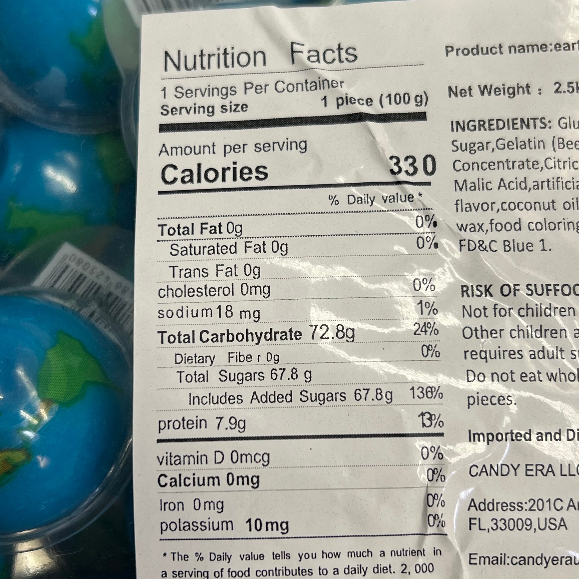Individually Wrapped Filled 3D Gummy Earth Candy's BB 05/26