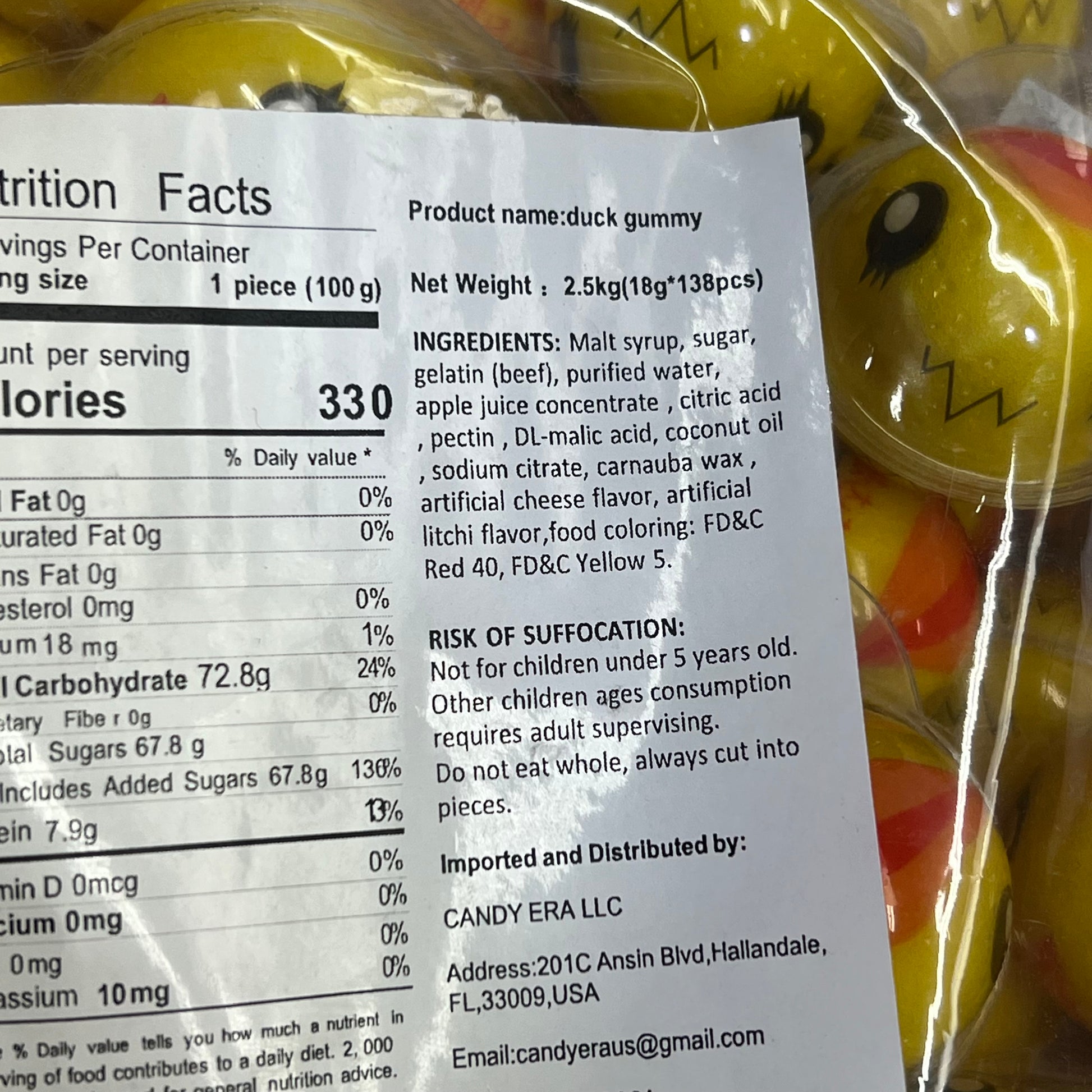 Individually Wrapped Gummy Filled Duck Candy's BB 05/26