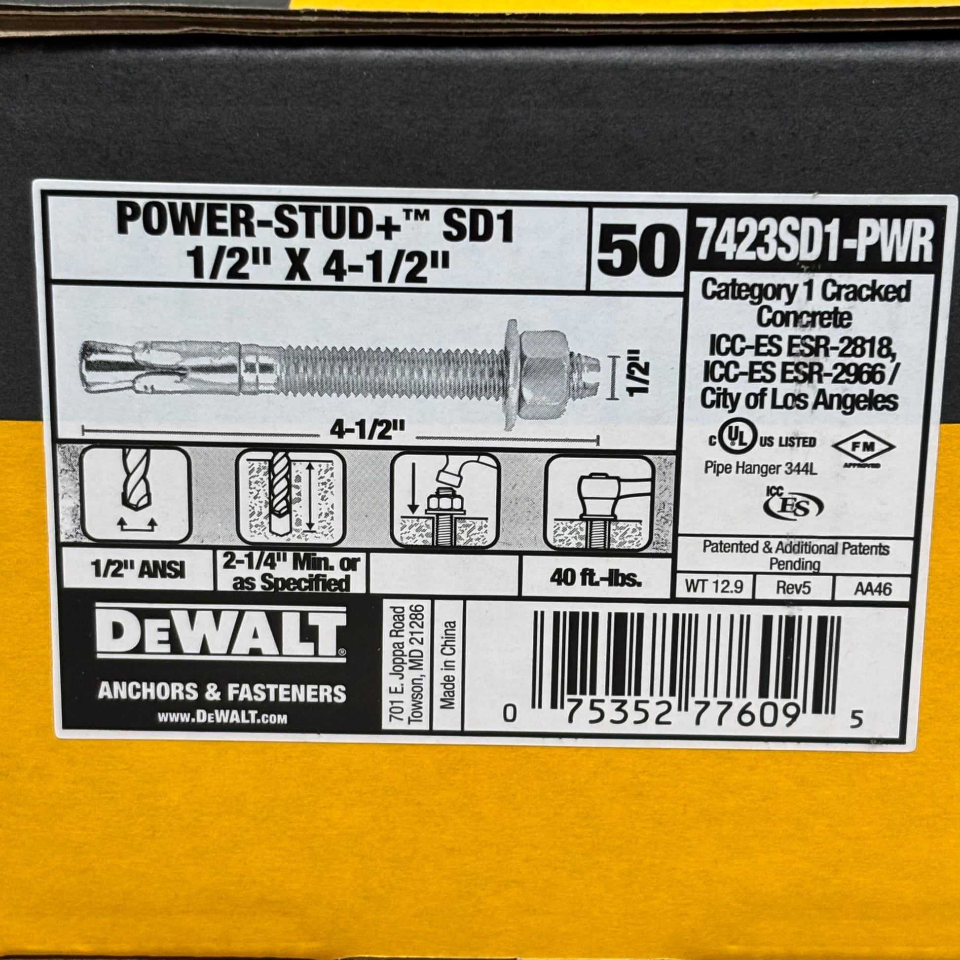 DEWALT Power-Stud+ SD1 Wedge Expansion Anchor 4-1/2" x 1/2"Threaded 7423SD1-PWR