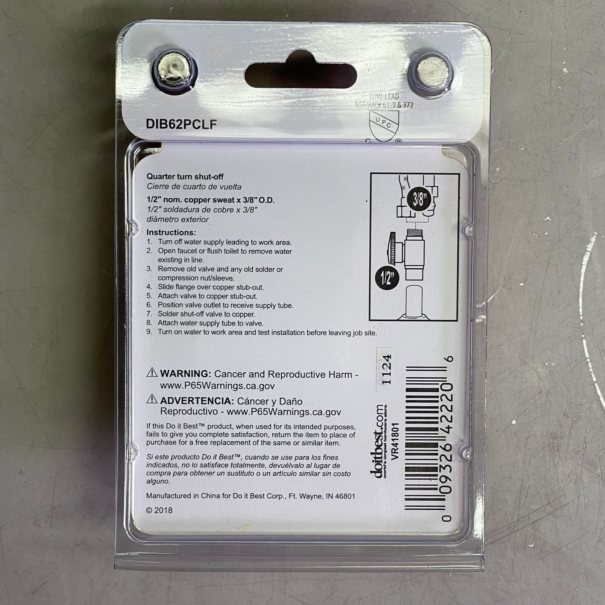 DO IT BEST (6 PACK) Quarter Turn Straight Valve 1/2"COP x 3/8"OD DIB62PCLF 456483