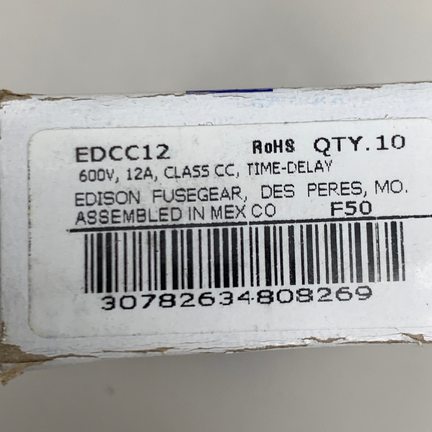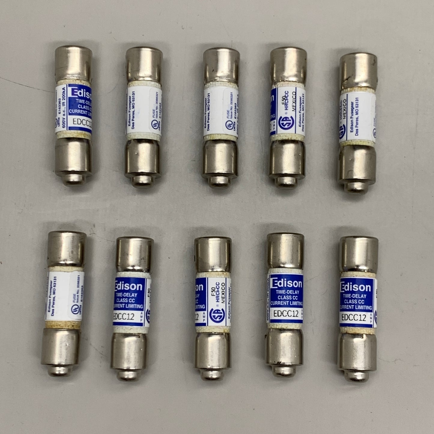 EDISON 10PK! Class CC Time-Delay 600v 12a Fuses EDCC12