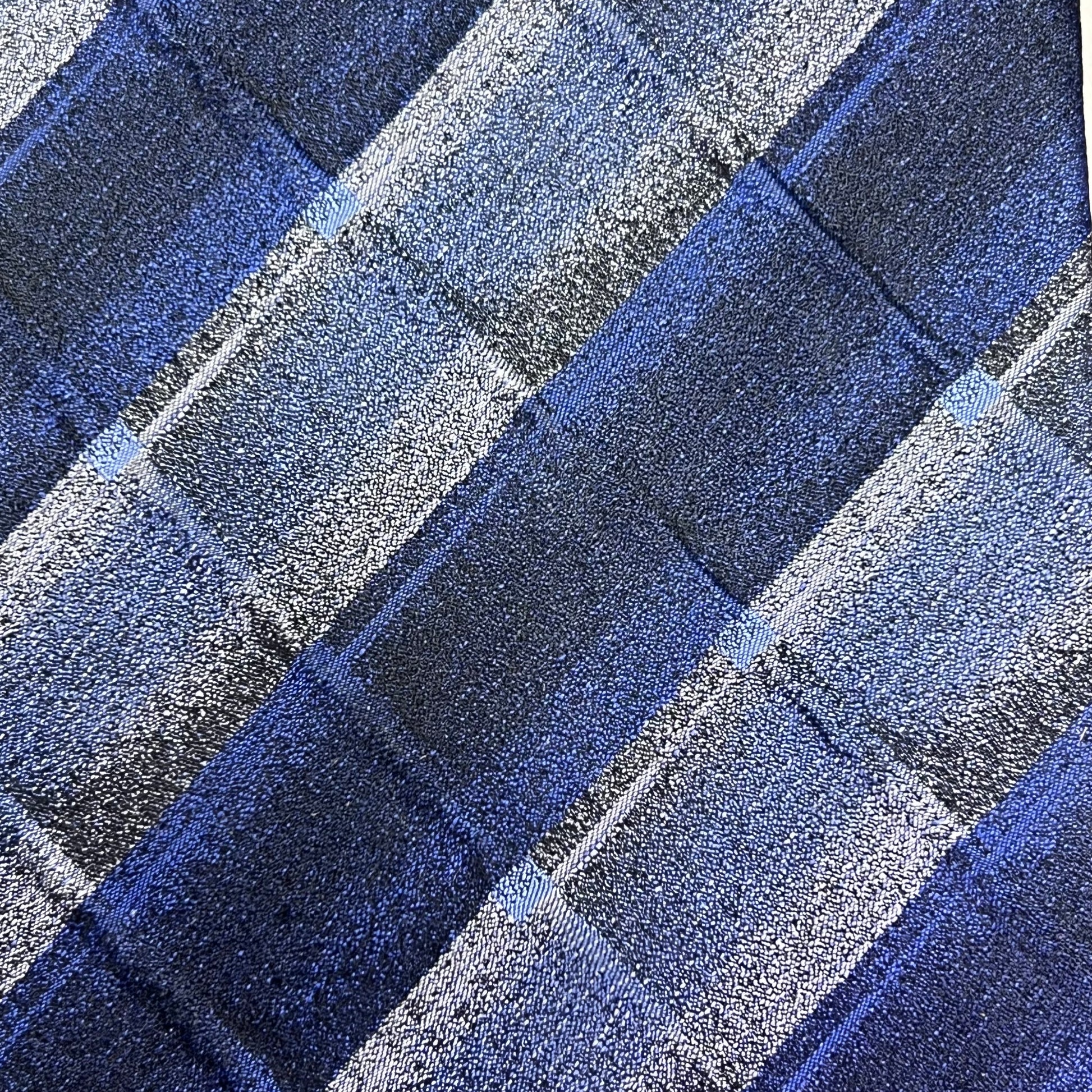 EMILIO PONTI Hand Made 100% Silk Suit Tie Ombre Plaid 60" Blue/White (Pre-Owned)