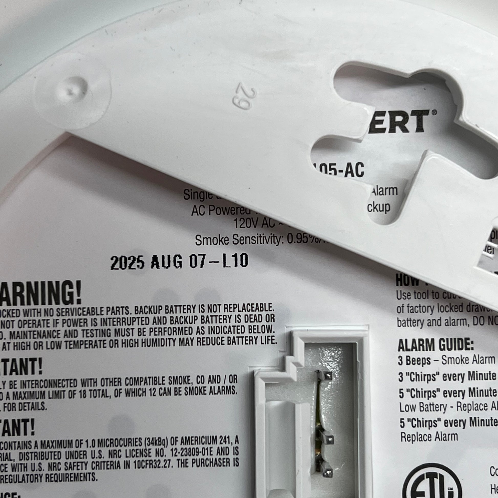Description: Interconnect Hardwire Smoke Alarm with 10-Year Battery Backup uses First Alert's Precision Detection advanced sensing technology and meets the latest industry standards. Interconnect multiple alarms together to help provide an early warning throughout your whole home and have peace of mind knowing the 10-year battery backup provides continuous protection in the event of a power outage.
