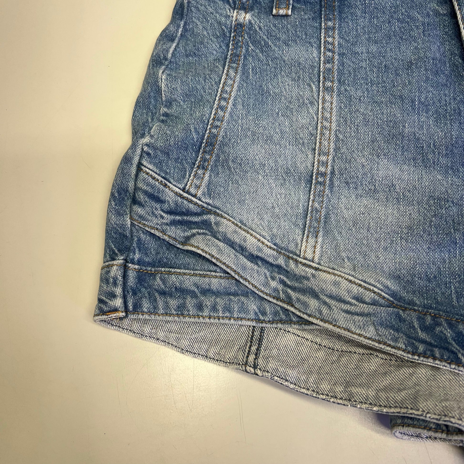 Features: Zip fly and button closure, flattering raised seaming, curved piecing at the hem, back pockets