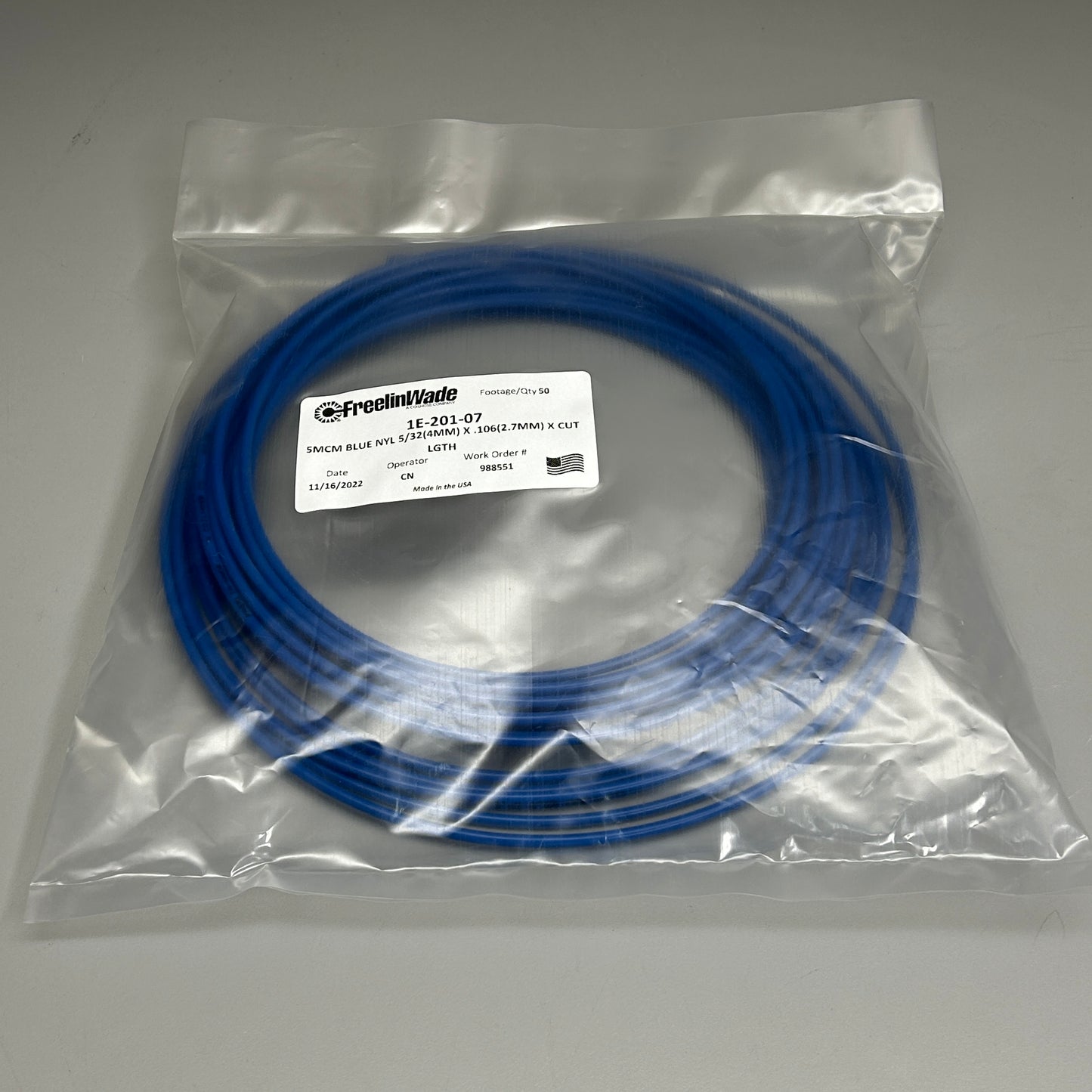 FREELIN-WADE Nylon Tubing 50 ft Blue 1E-201-07 (New)