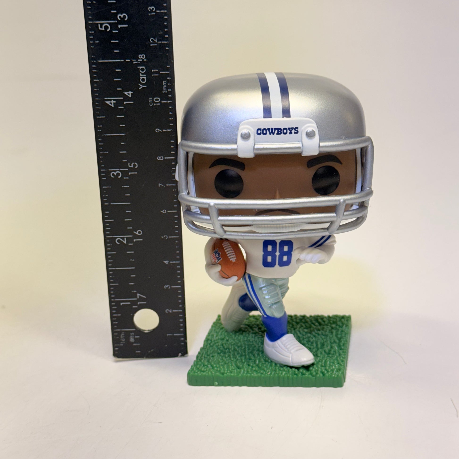 Draft POP! Michael Irvin, wide receiver for the Dallas Cowboys, to your NFL collection in his white and silver home uniform! Which team will POP! Michael Irvin and the Cowboys play next in your football lineup? Vinyl figure is approximately 4 in (10.2 cm) tall.