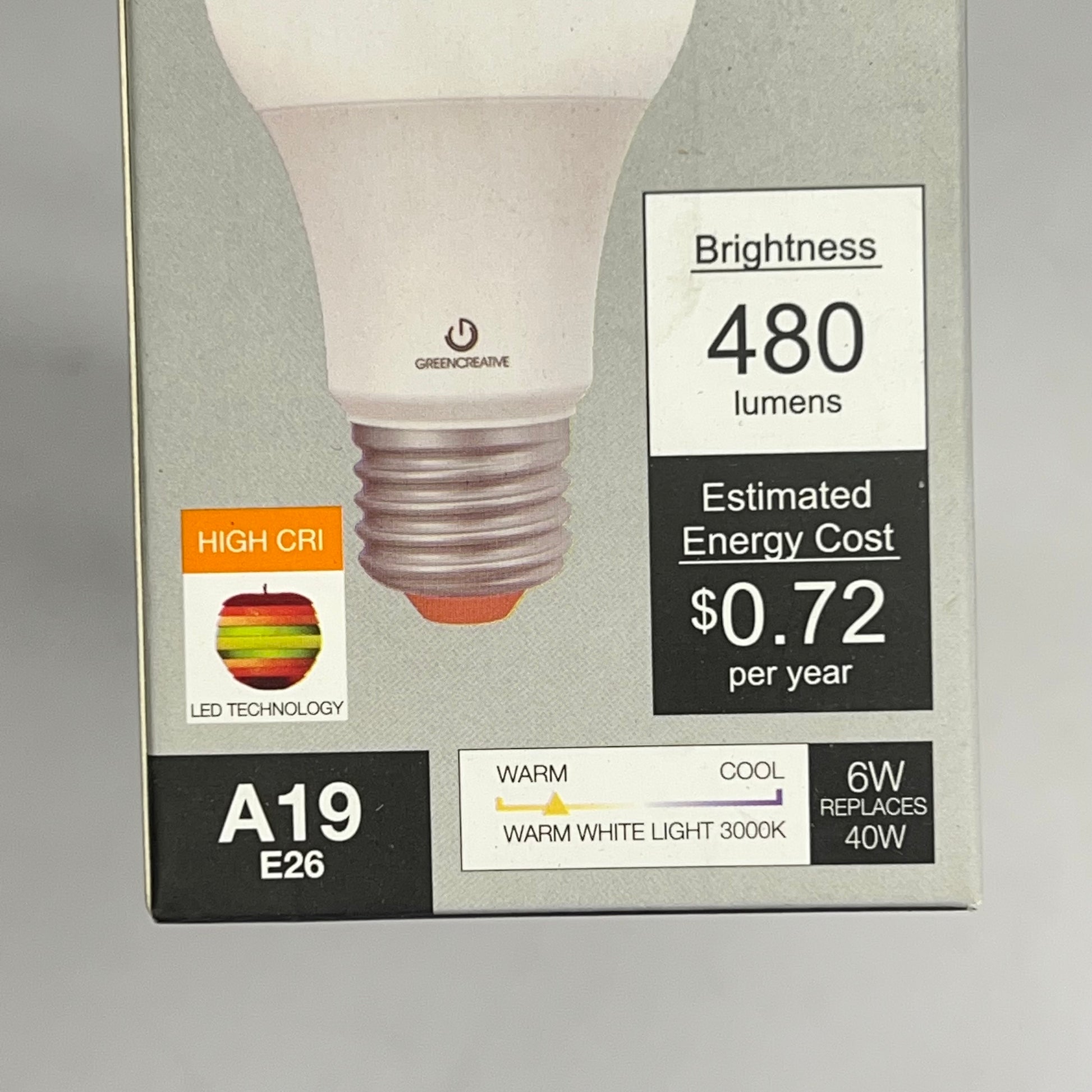 GREENCREATIVE (2 PACK) High Cri Led Technology A19 E26 3000K Warm White Light 6A19DIM/930