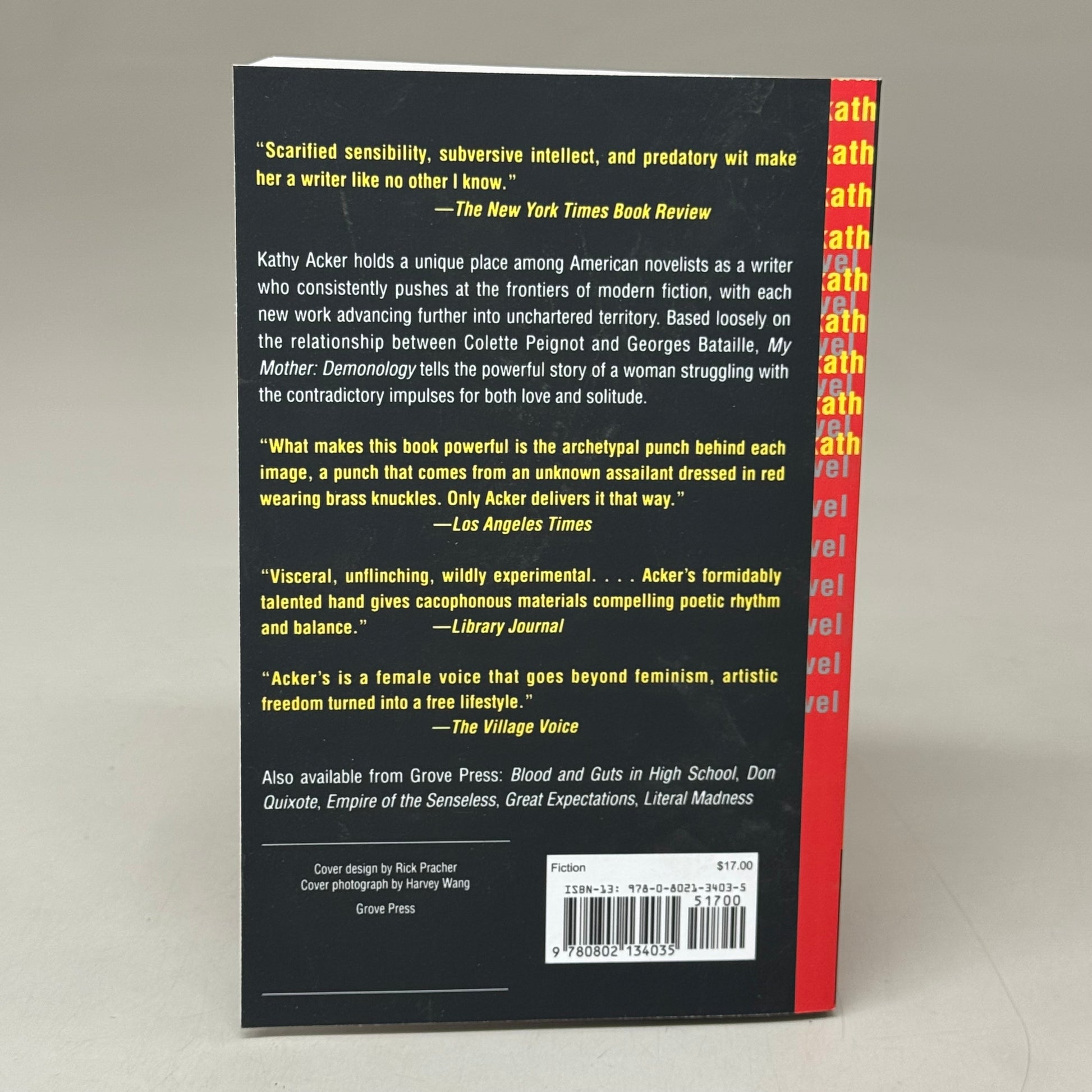 GROVE PRESS MY MOTHER: DEMONOLOGY A NOVEL By Kathy Acker Paperback Fiction