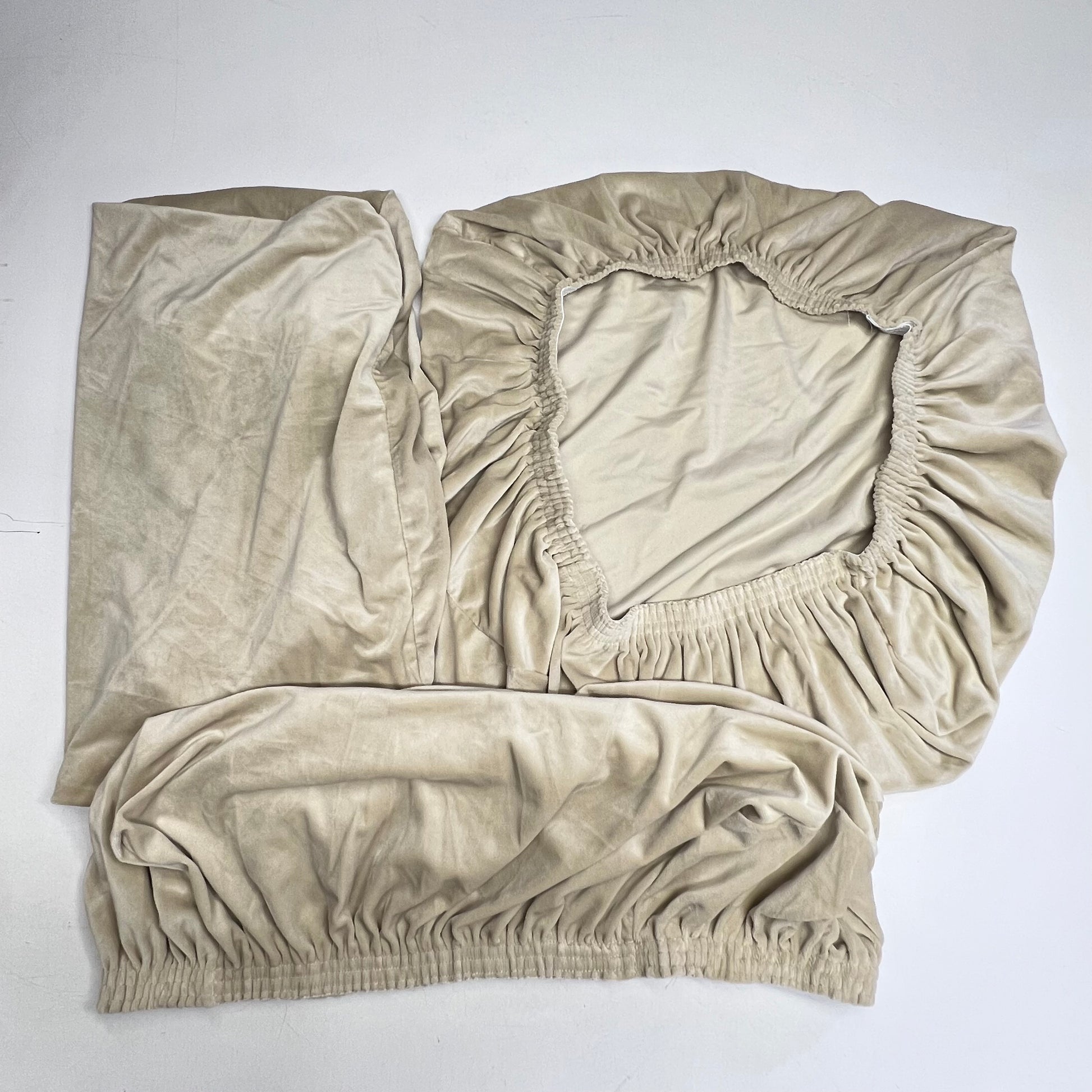 H.VERSAILTEX Velvet 3 Seat Sofa Stretch Cover W/ Arms Washable Creme (New Other)