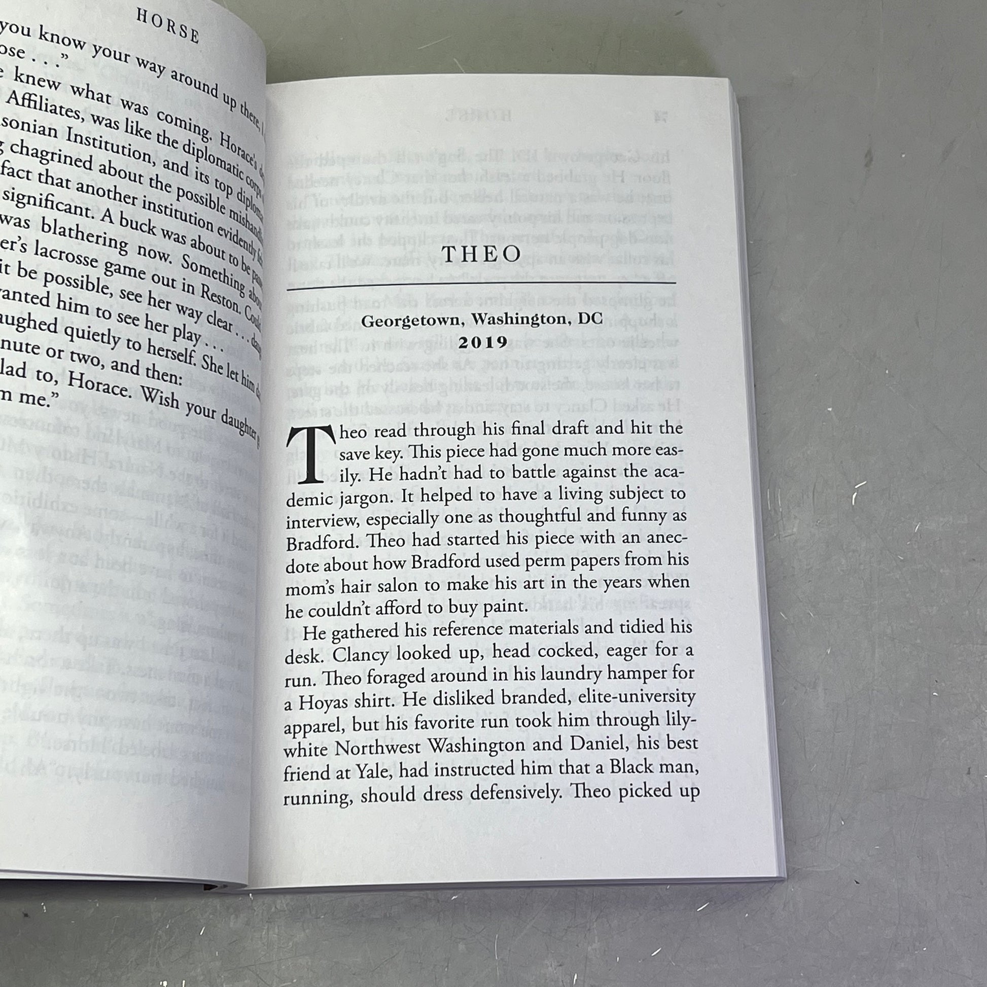 Washington, DC, 2019. Jess, a Smithsonian scientist from Australia, and Theo, a Nigerian-American art historian, find themselves unexpectedly connected through their shared interest in the horse—one studying the stallion’s bones for clues to his power and endurance, the other uncovering the lost history of the unsung Black horsemen who were critical to his racing success.