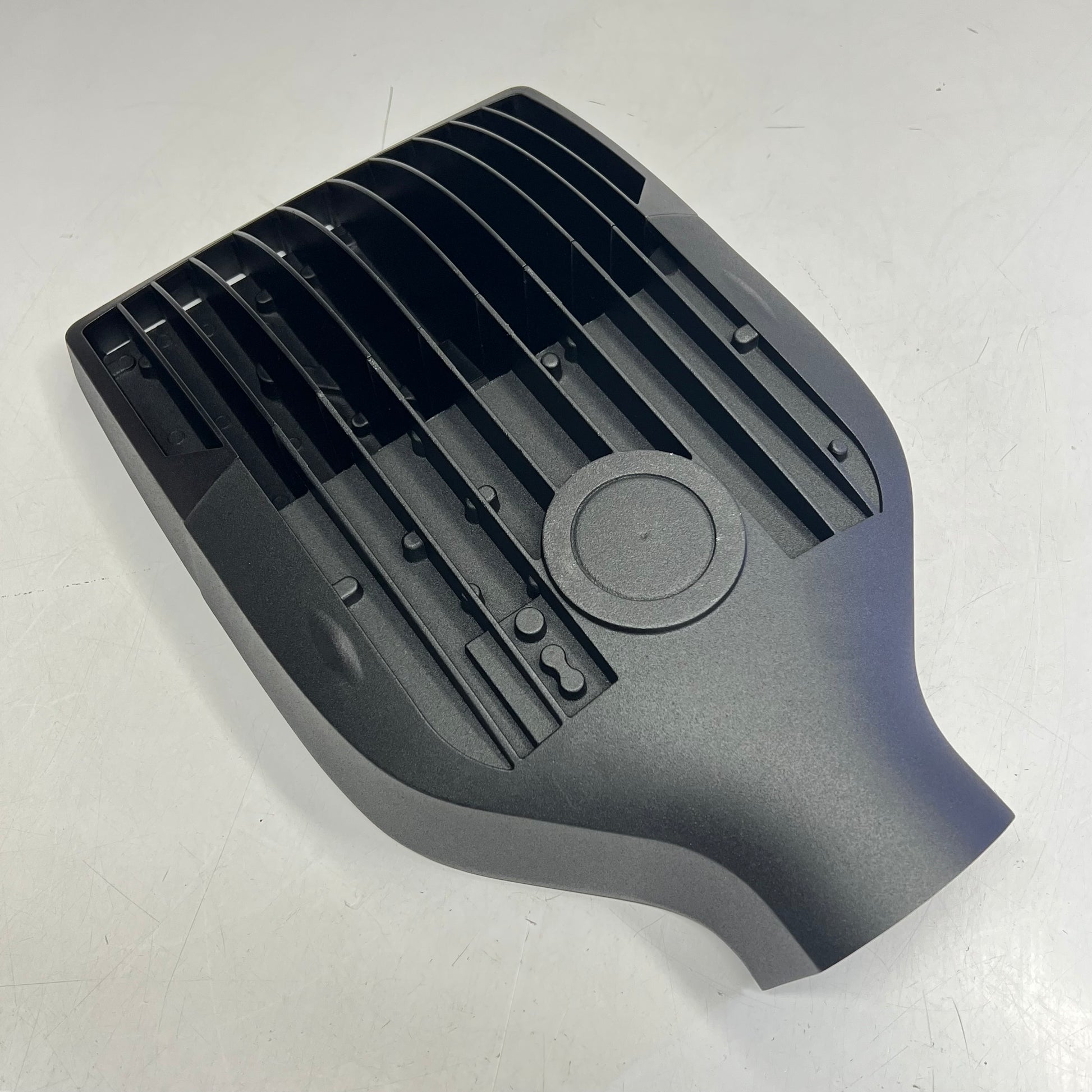 Die-cast housing with hidden vertical heat fins that are optimal for heat dissipation while keeping a clean smooth outer surface