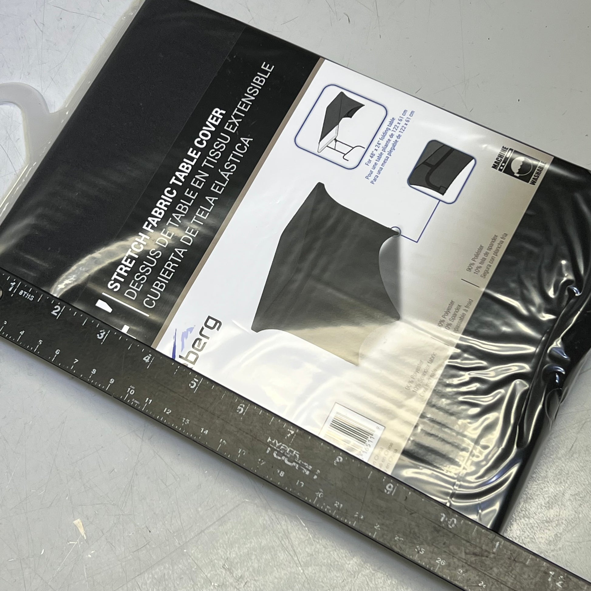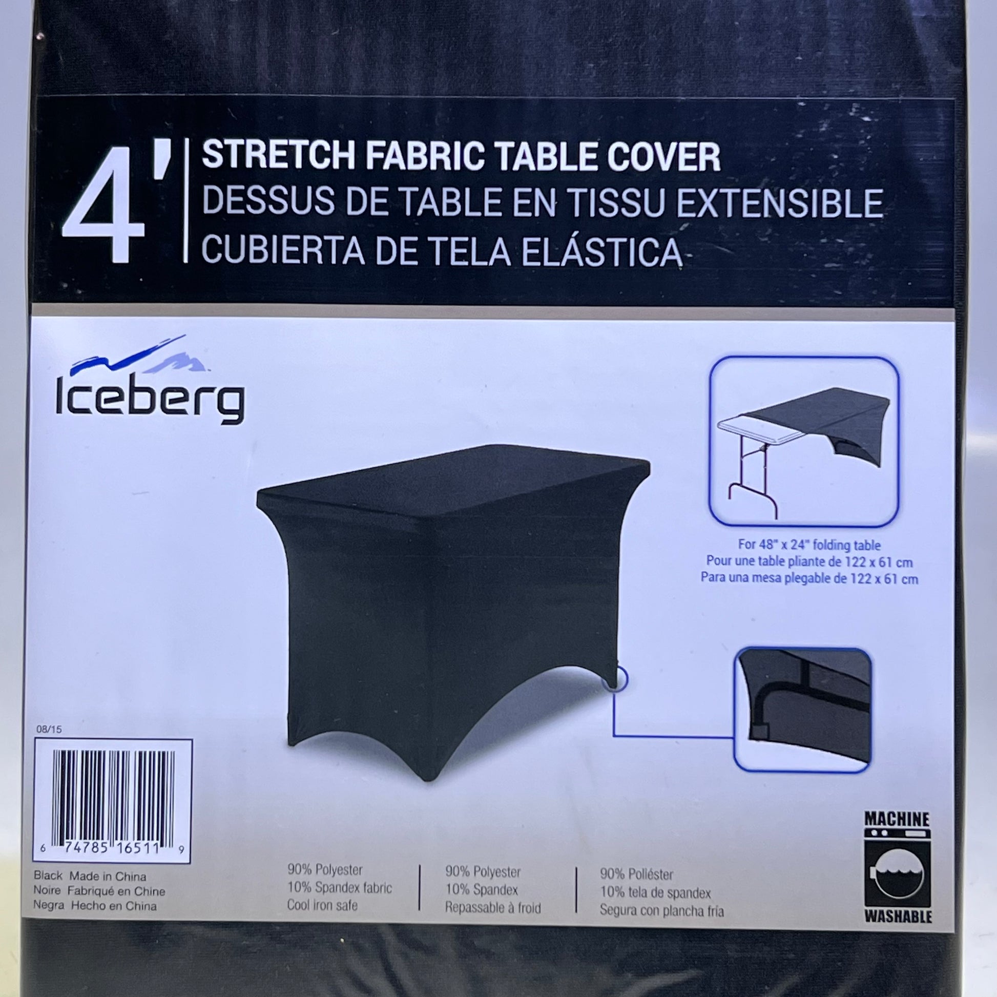 ICEBERG 4' Stretch Fabric Table Cover for 48" x 24", Black