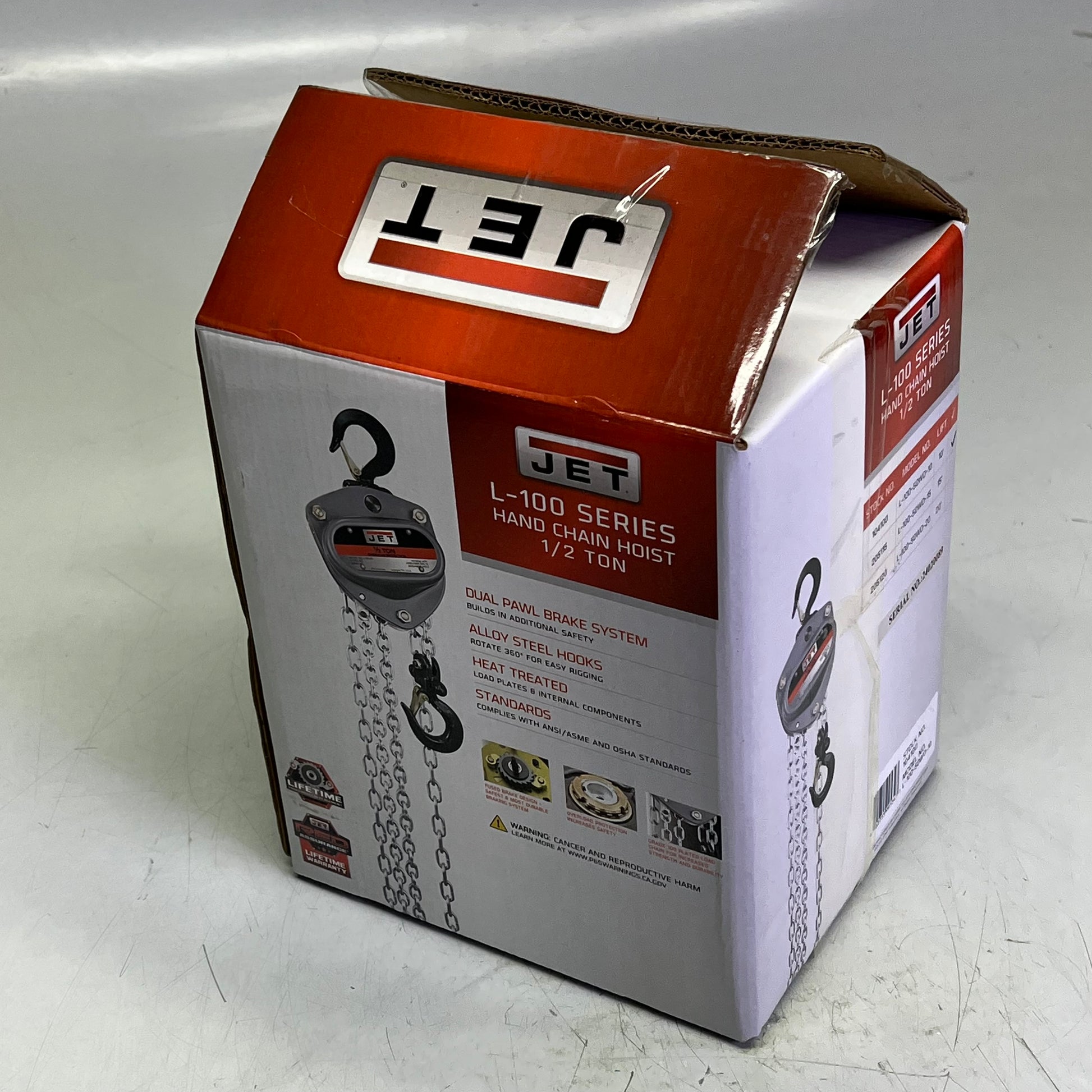 JET Chain Hand Hoist W/ Overload Protection 10ft - 1/2 Ton Chrome/Gray 100-50-10
