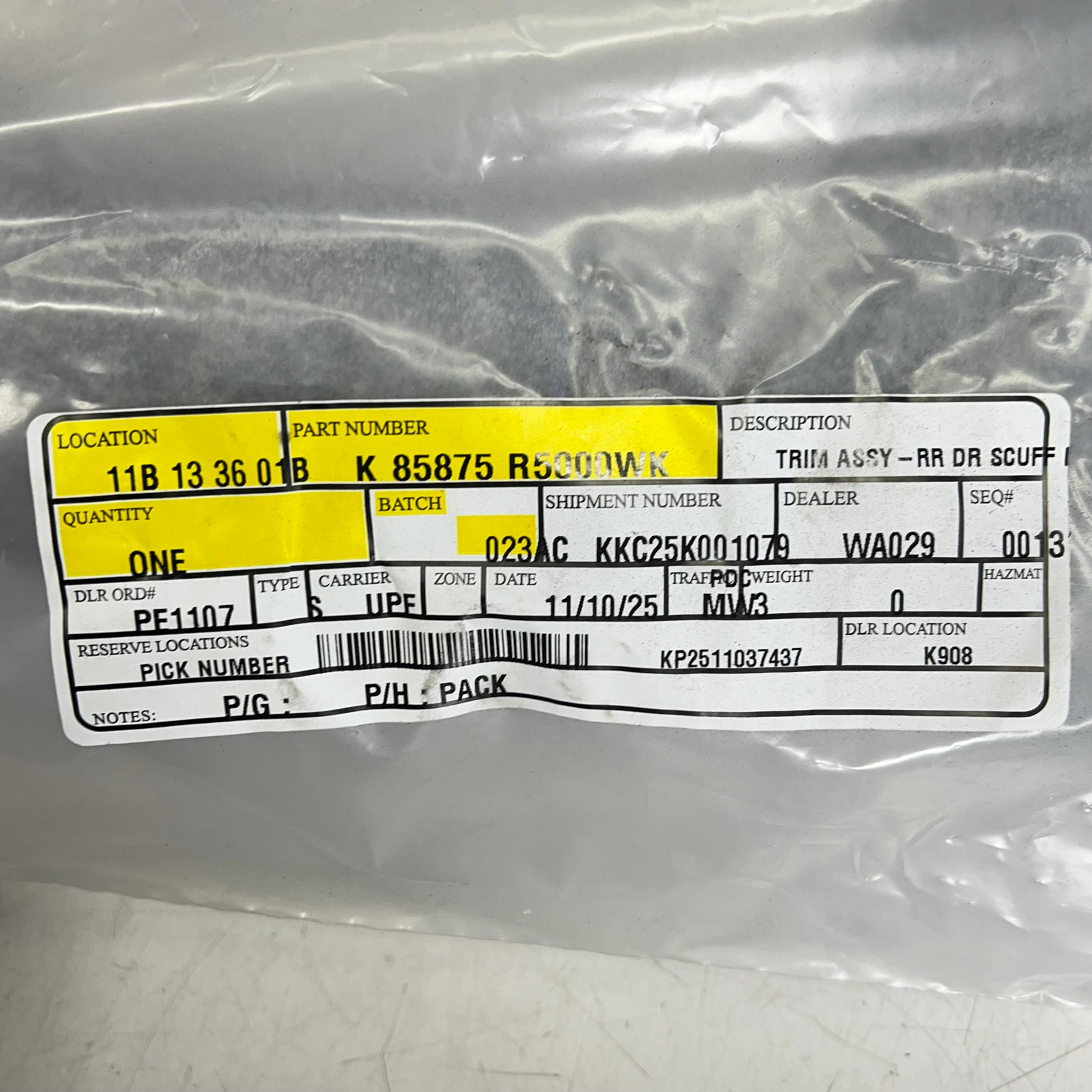 KIA Genuine Oem Scuff Plate Left Rear 2021-2025 Sorento Models 85875-R5000WK