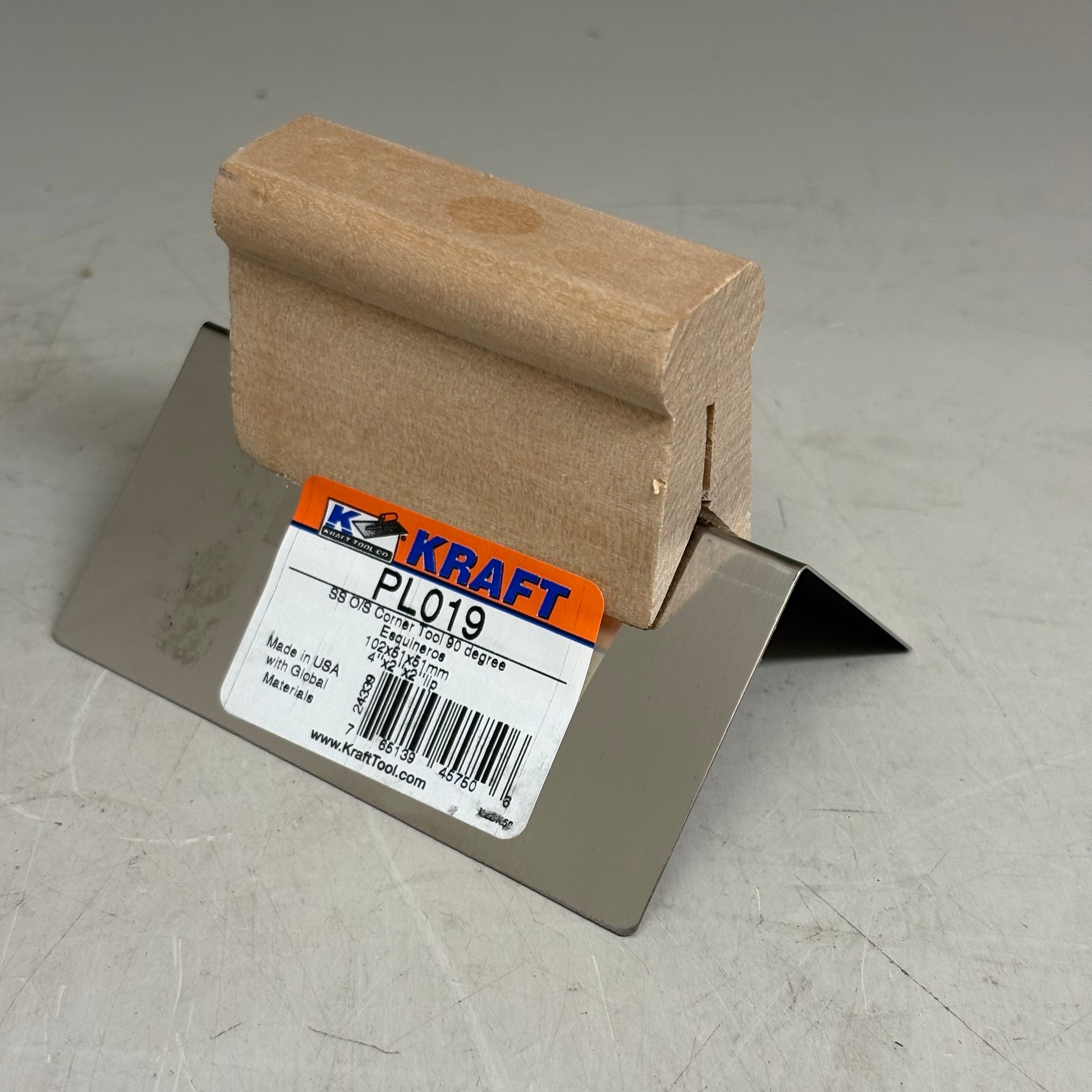 KRAFT TOOL CO 90°Radius Stainless Steel Outside Corner Tool with Wood Handle 4x2