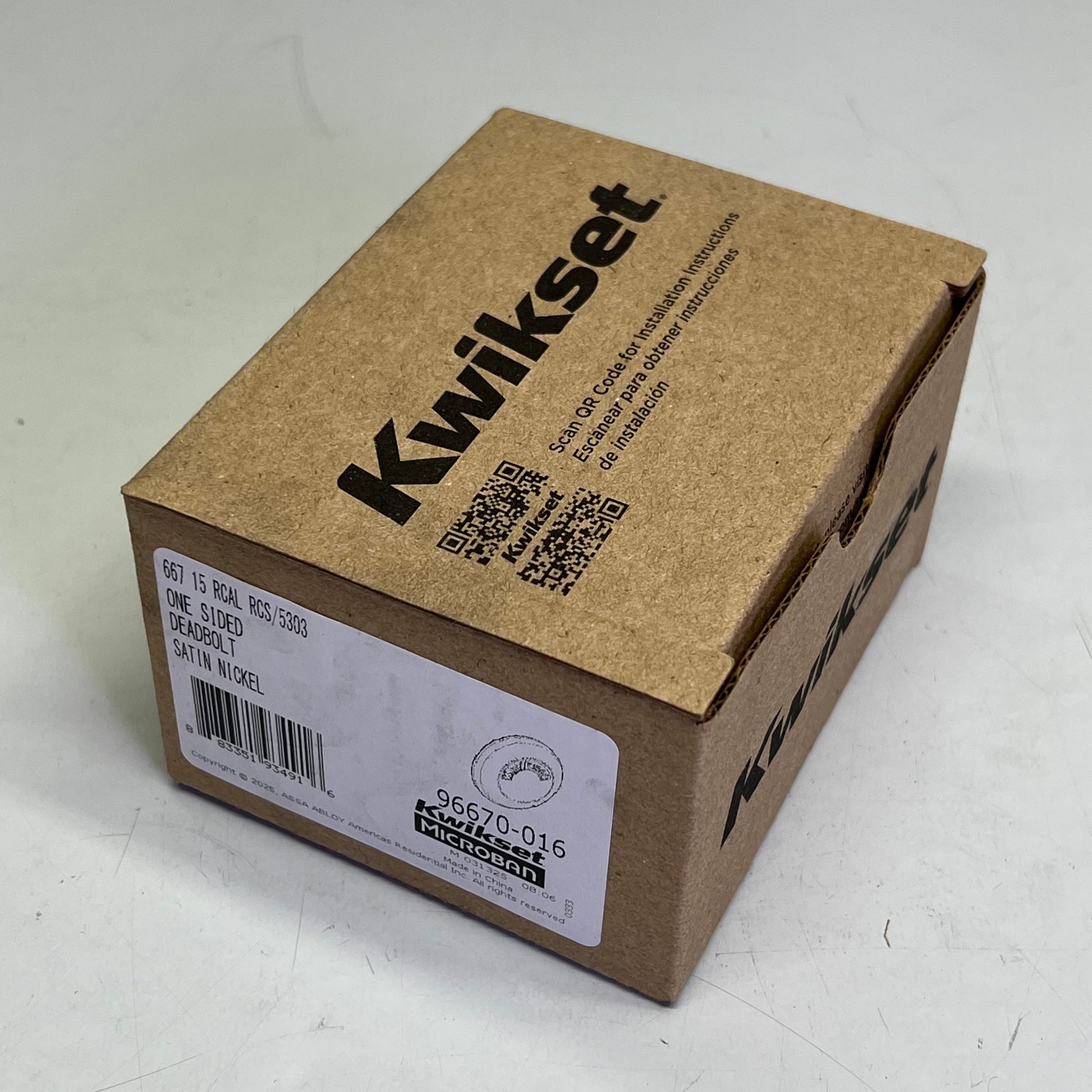 KWIKSET One Sided Deadbolt 667 15 RCAL 2 3/8" Backset Satin Nickel 96670-016
