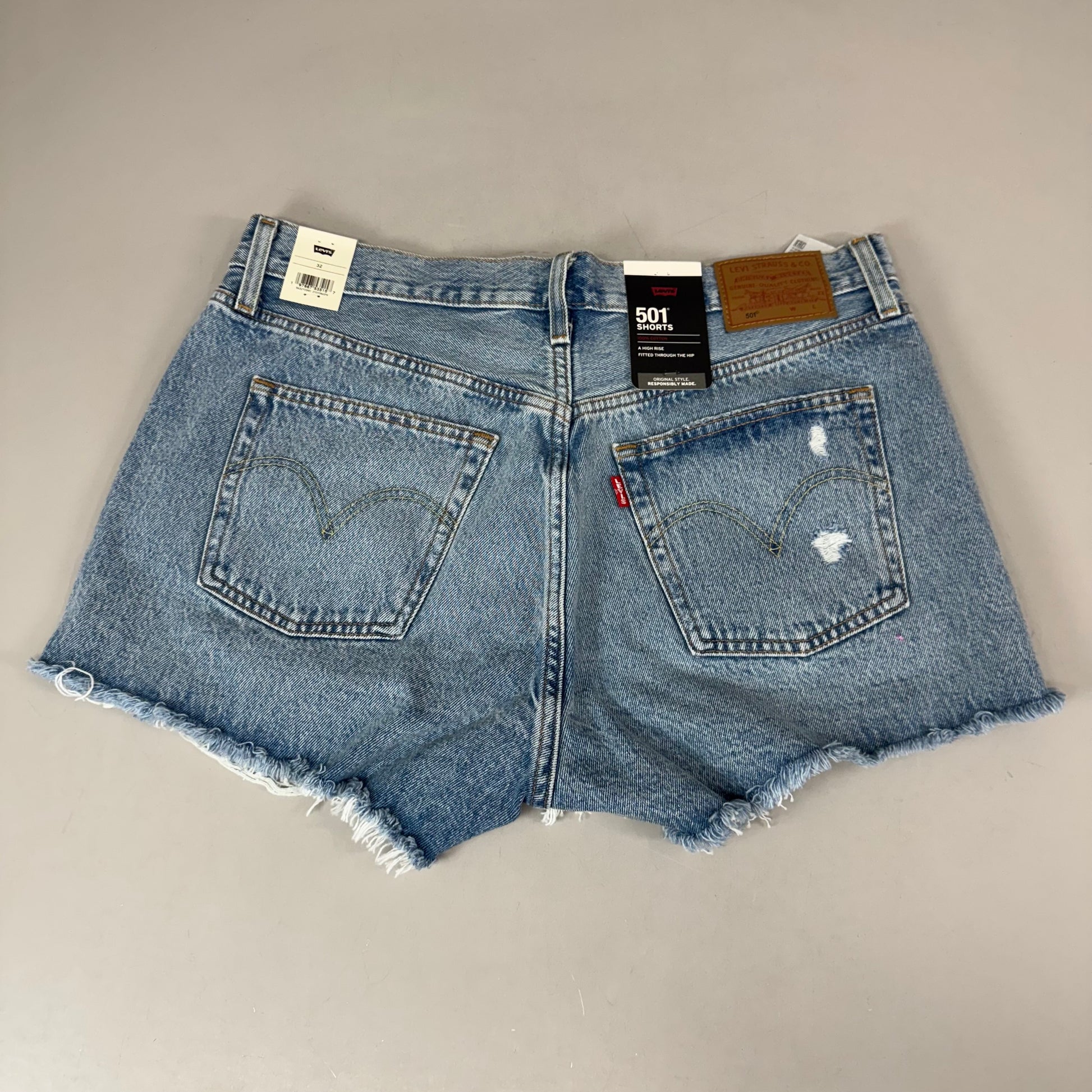 LEVIS 501 Original Fit High Rise Shorts Women's Sz 32 Vague Finish Medium Wash