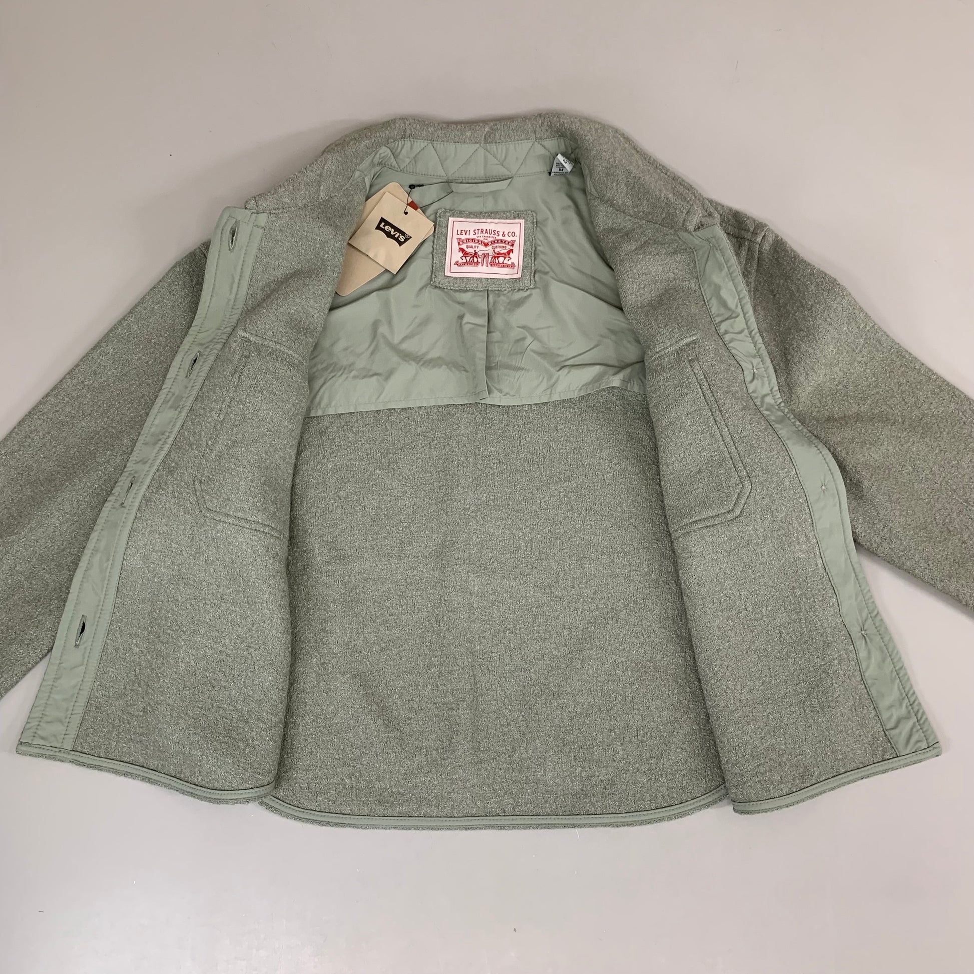 LEVI'S Front Button Cropped Jacket W/ Laydown Collar Women's Medium Tea Green 595450040