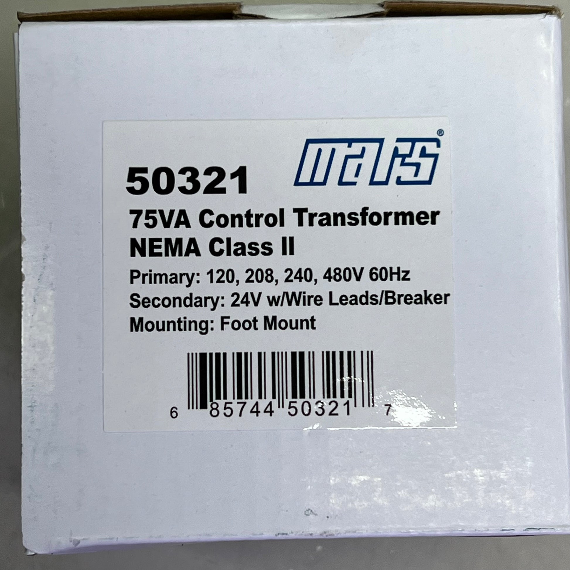 MARS 503 Series Foot Mount Transformer 24V w/ Wire Leads Breaker 75VA 50321