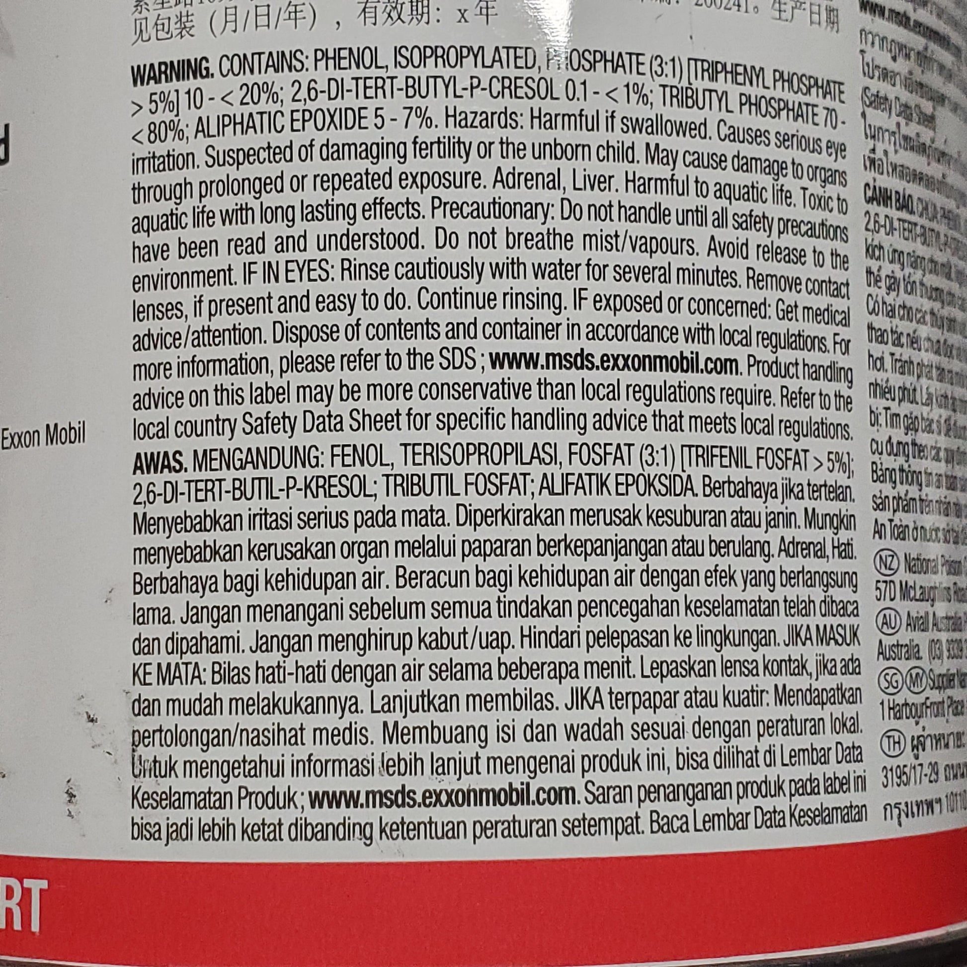 MOBIL Aviation Hydraulic Fluid Fire Resistant 1 Quart HYJET V BB 03/30
