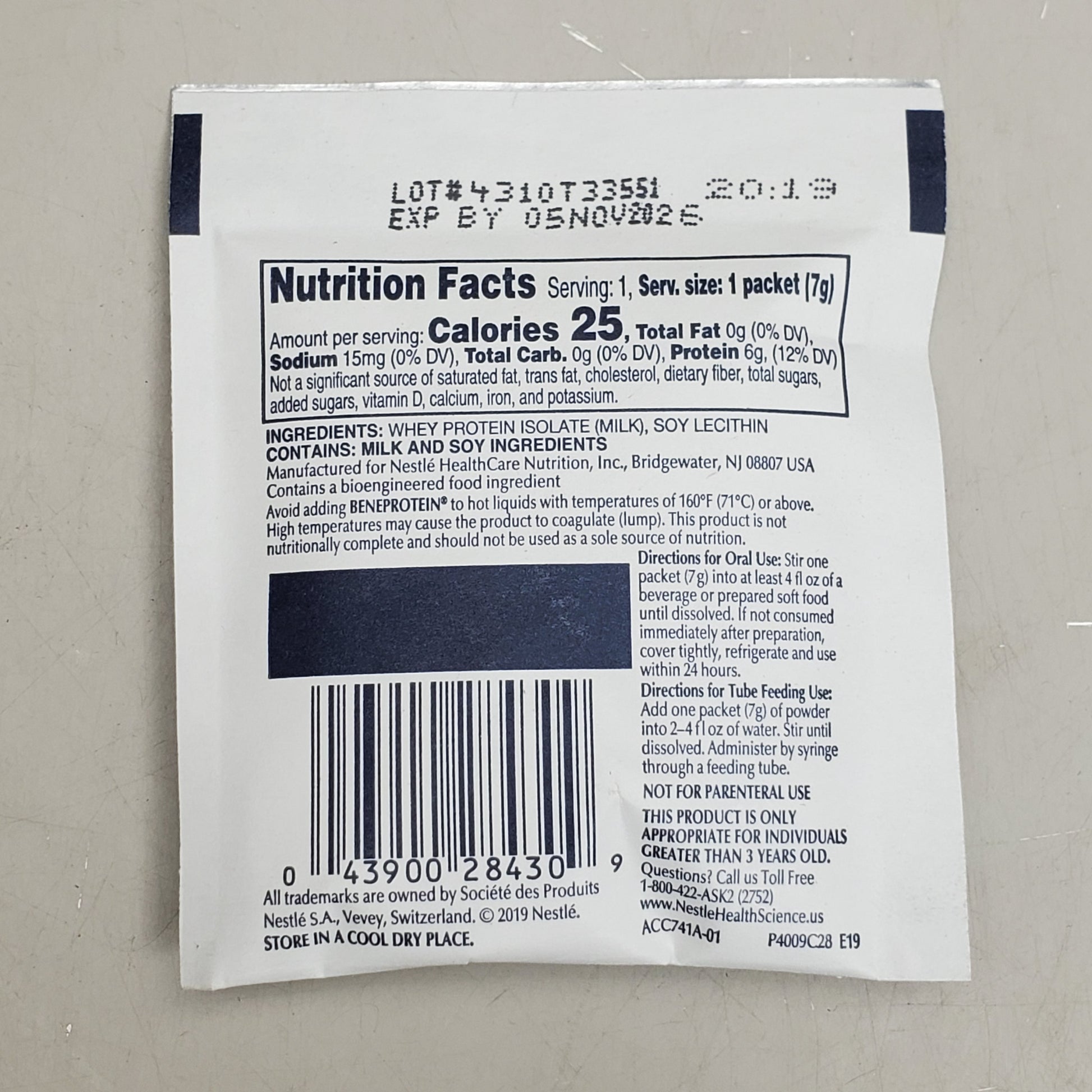 NESTLE (75 Pack) Beneprotein Instant Protein Powder 0.25 oz Unflavored G12147839 BB 11/26